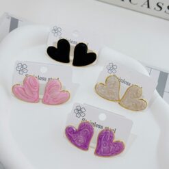 ARETE ESMALTADO NATURAL CORAZON ROSA