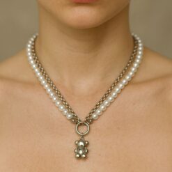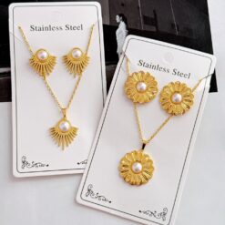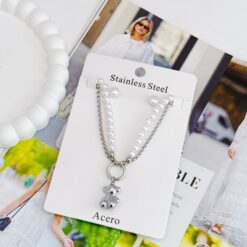 COLLAR Y ARETE DESTELLO O FLOR PERLA