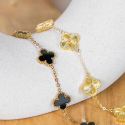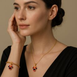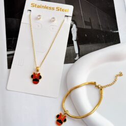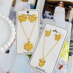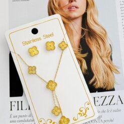 COLLAR Y ARETE DORADO TREBOL CON COLGANTE