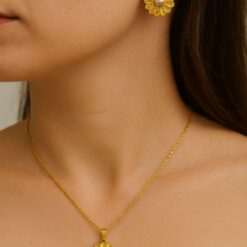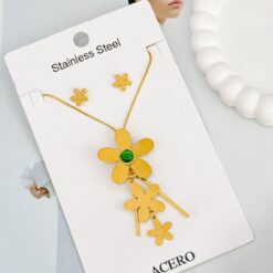 COLLAR Y ARETE CON TRES FLORES CON PIEDRA NATURAL