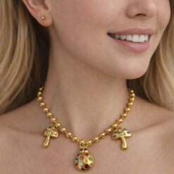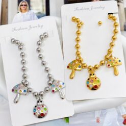 COLLAR Y ARETE BOLITA CON DIJE CATARINA CON HONGO
