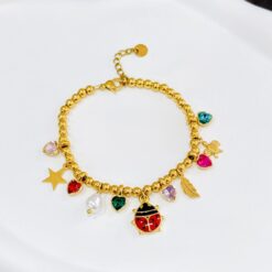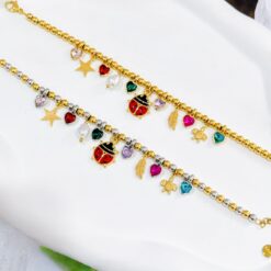 PULSERA BOLITA CON MULTI DIJE EN DORADO/PLATA