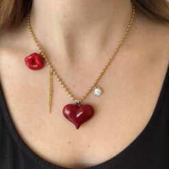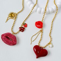 COLLAR BOLITA Y MULTI CHARMS LABIO/CORAZON ROJO