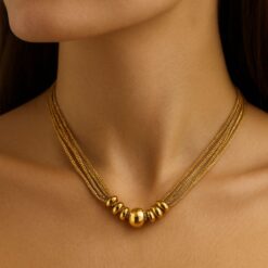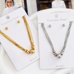COLLAR Y ARETE CASCADA MULTI ESFERA DORADA/PLATA