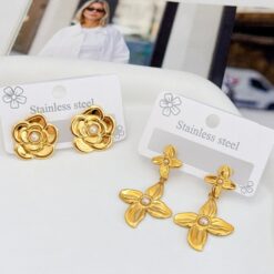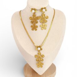 COLLAR Y ARETE DE TRES FLORES CON PERLA