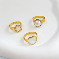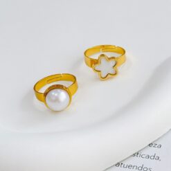 ANILLO AJUSTABLE DE PERLA O FLOR Y CORAZON ESMALTADO