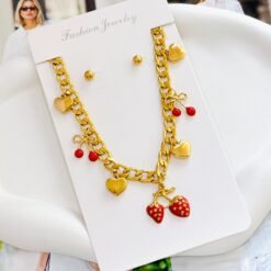 COLLAR Y ARETE ESLABON MULTI CHARMS FRESA
