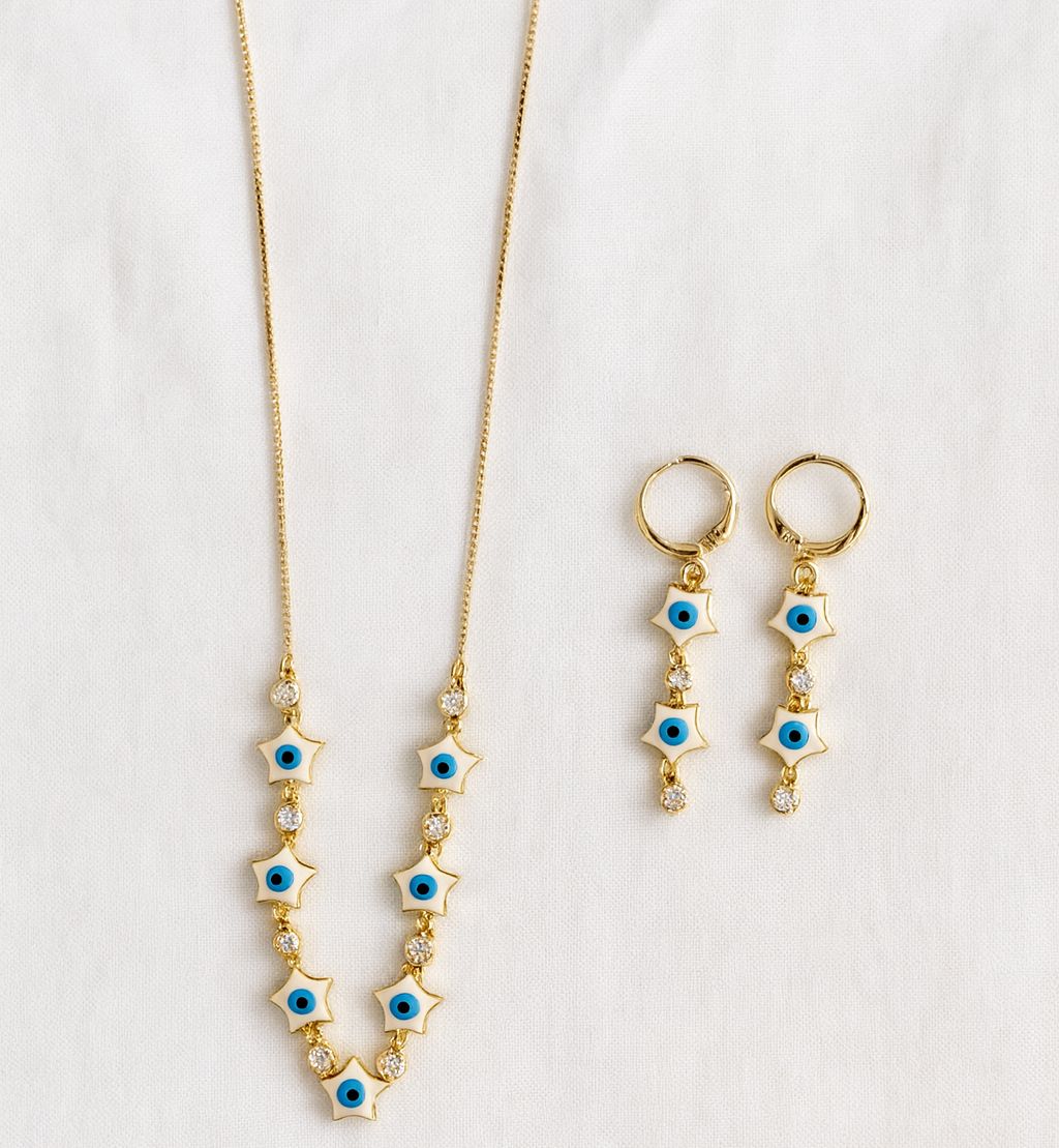 ⭐COLLAR Y ARETE OJO TURCO 💗
