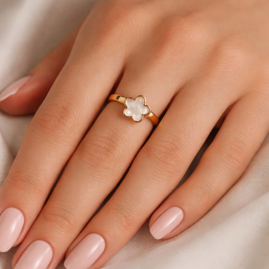 ANILLO AJUSTABLE DE PERLA O FLOR Y CORAZON ESMALTADO