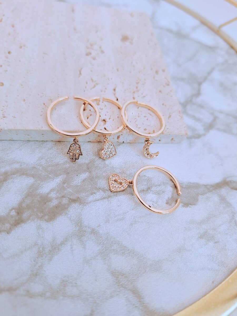 | DISEÑO | CORAZON, CORAZON HUECO, CRUZ, ESTRELLA, LETRA "A", LUNA, MANO FATIMA, MARIPOSA, OSO |