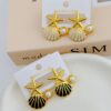 ARETE ESMALTADO NATURAL ALMEJA CON ESTRELLA DE MAR - NEGRO