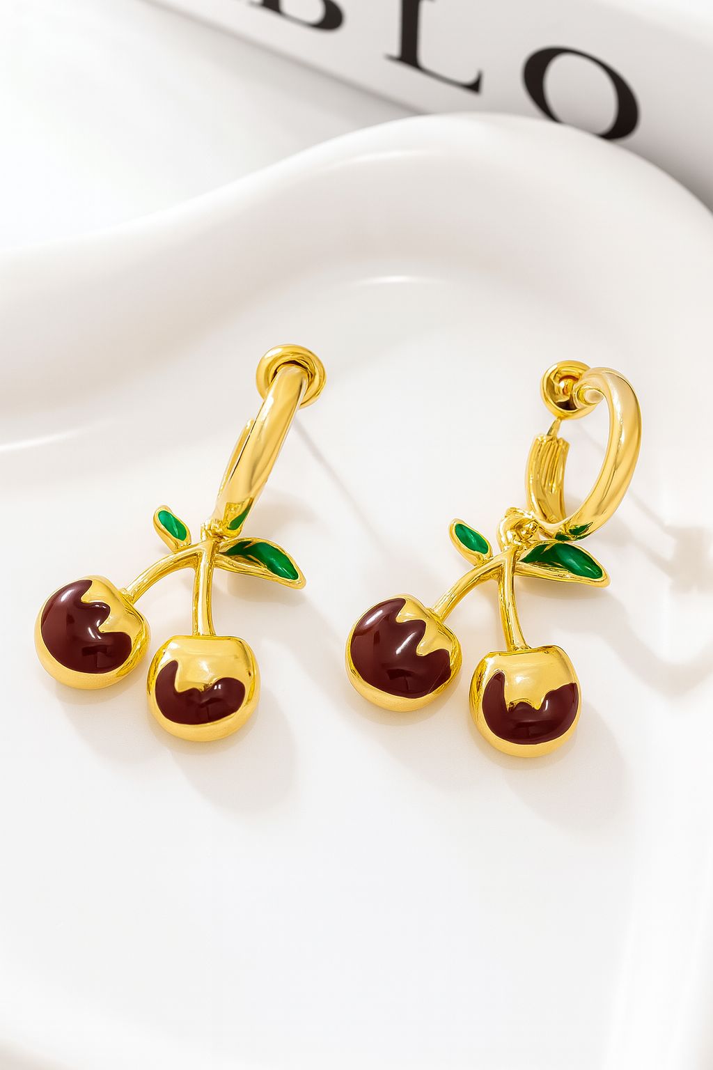 ARETE CEREZA CON ESMALTADO DORADO