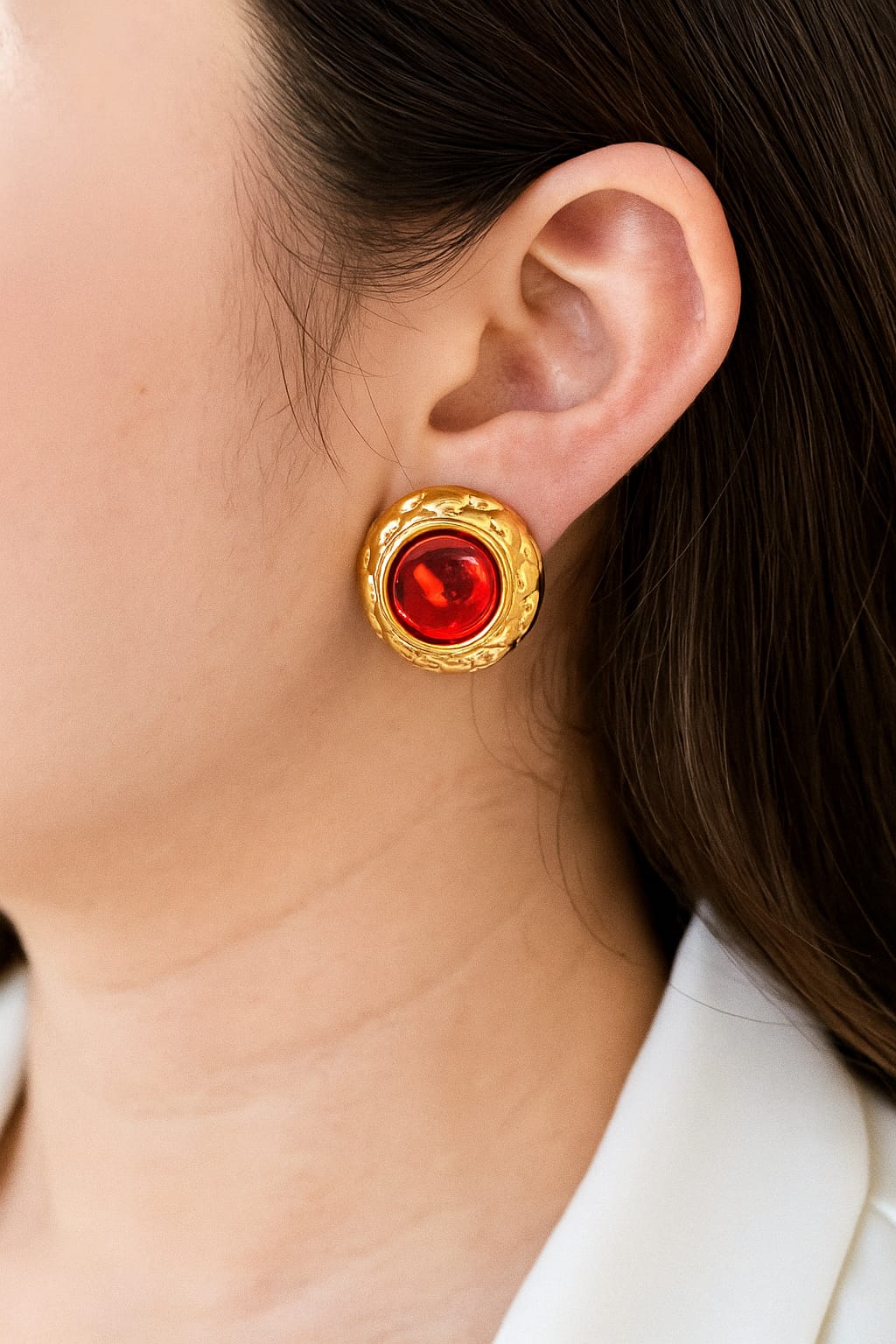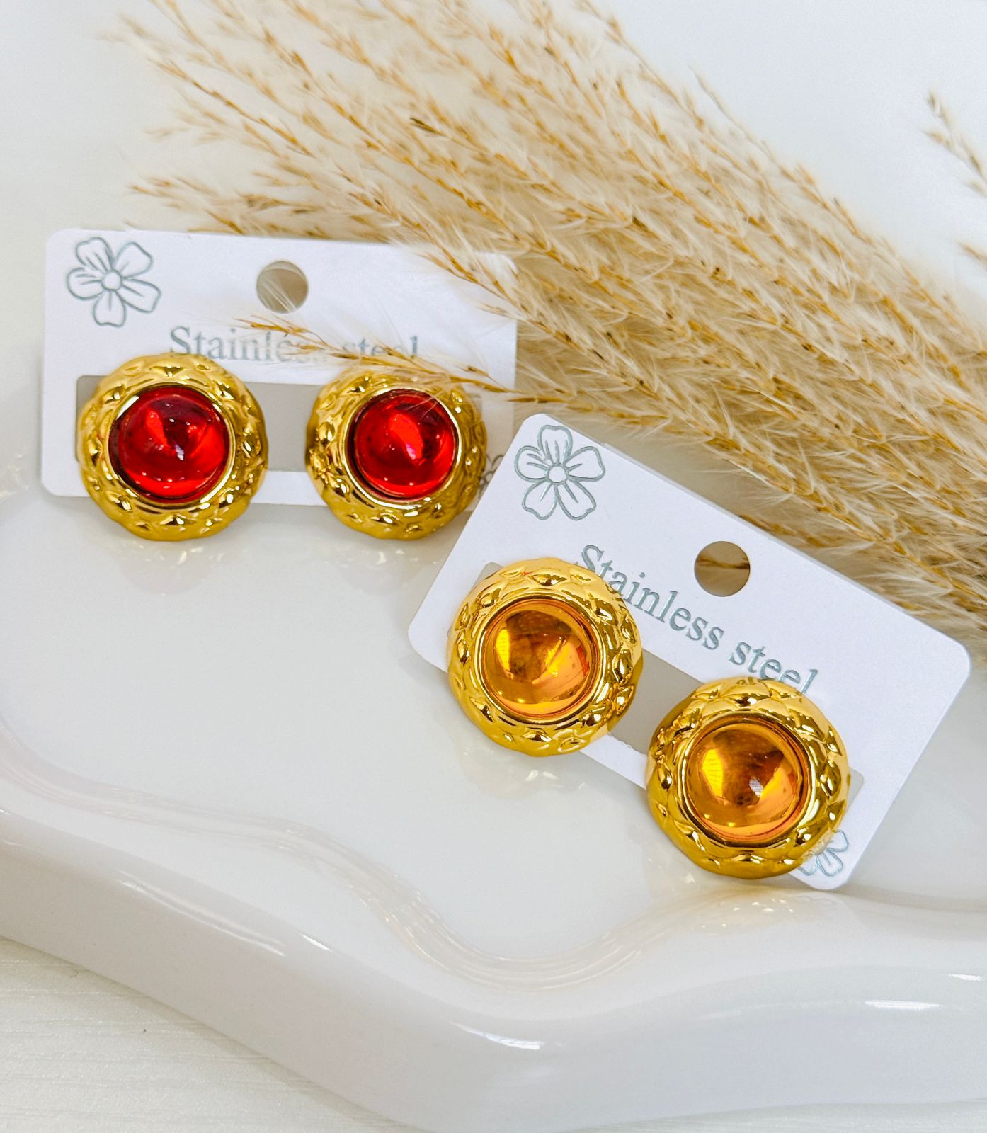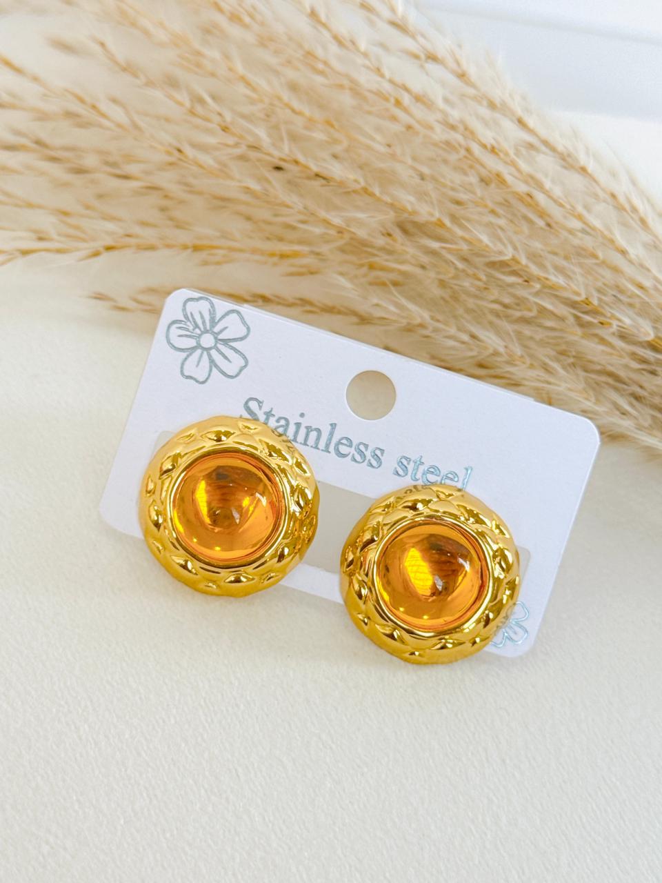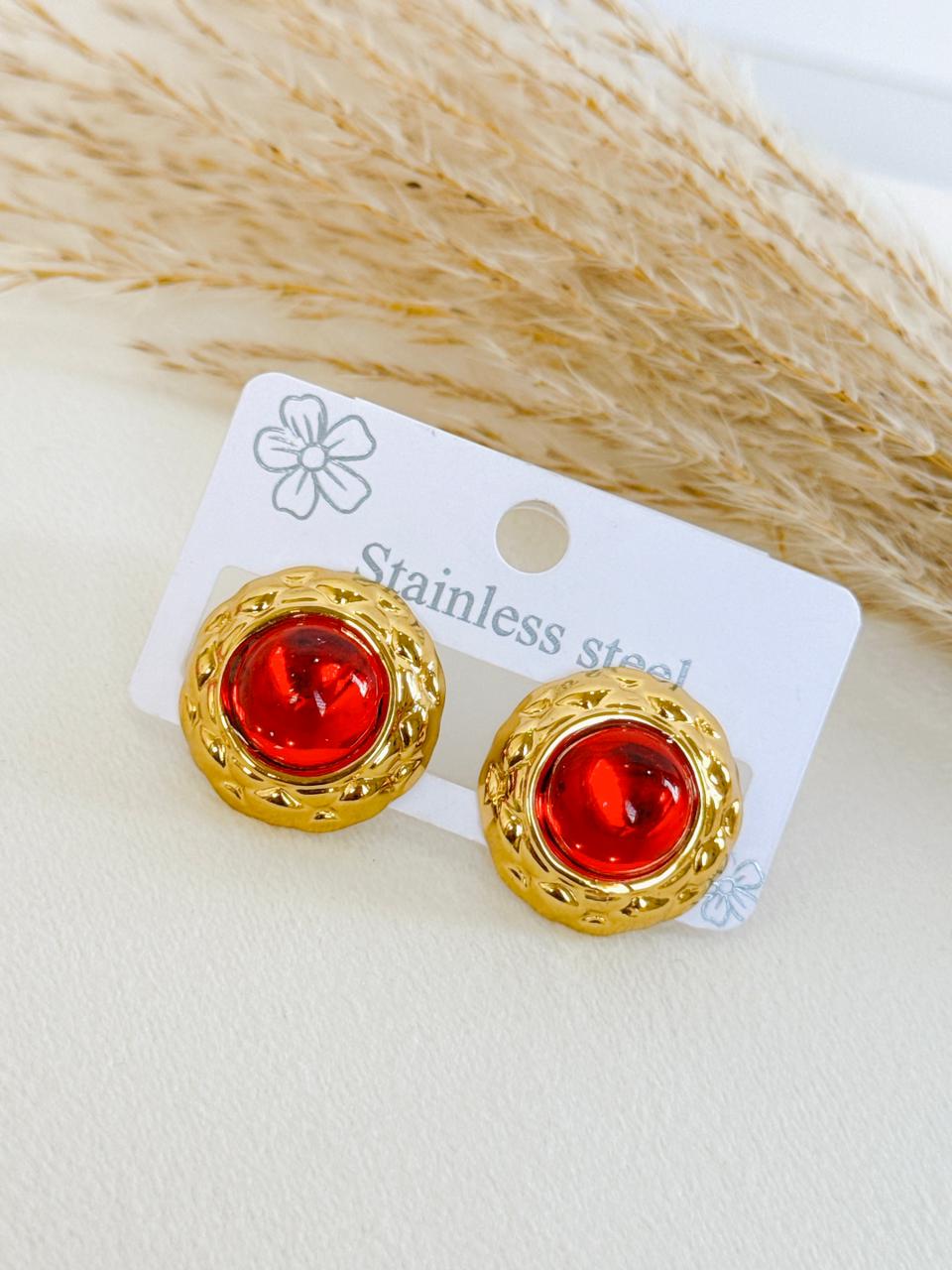 ARETE CIRCULAR CON CRISTAL ROJO O NARANJA