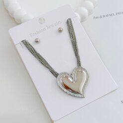 COLLAR Y ARETE CASCADA CORAZON GRANDE DORADA/PLATA - PLATA