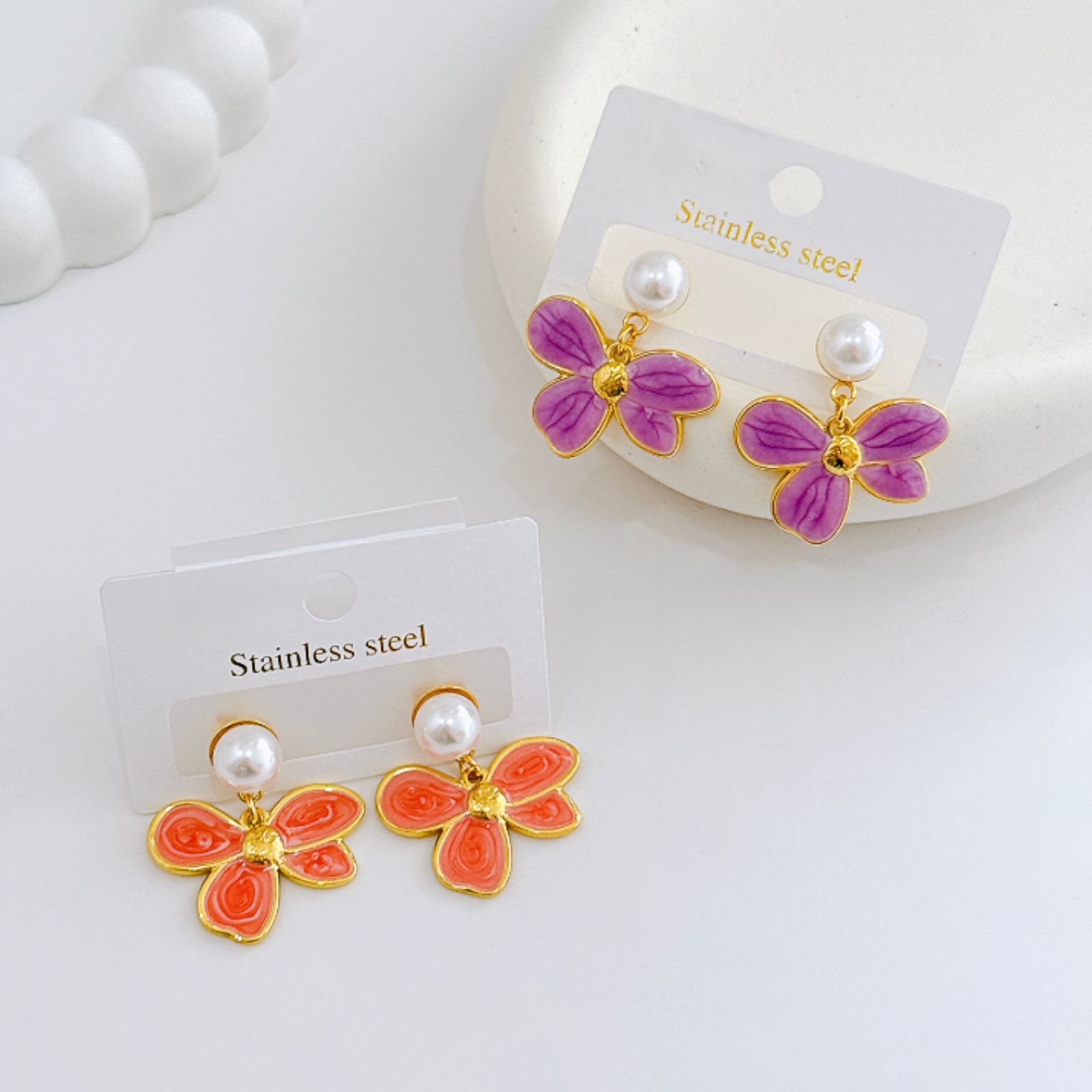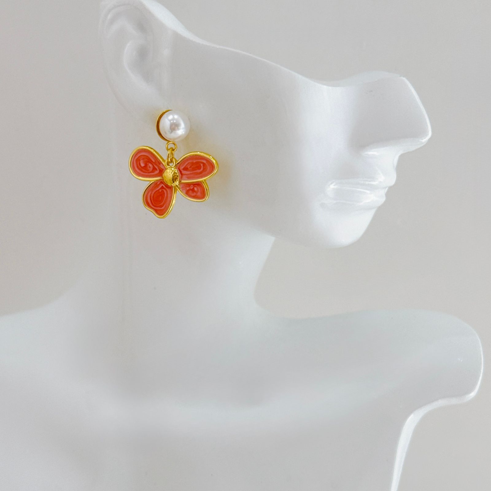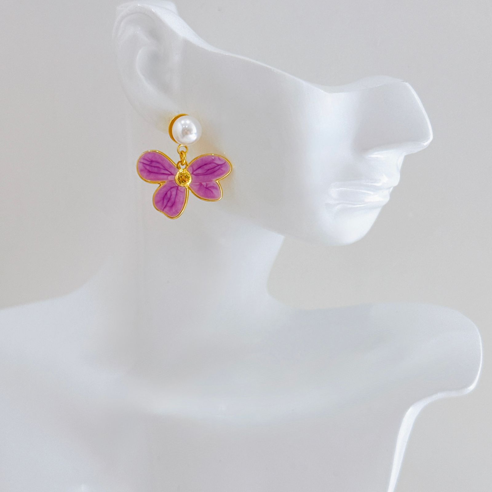 ARETE ESMALTADO NATURAL CON PERLA Y FLOR