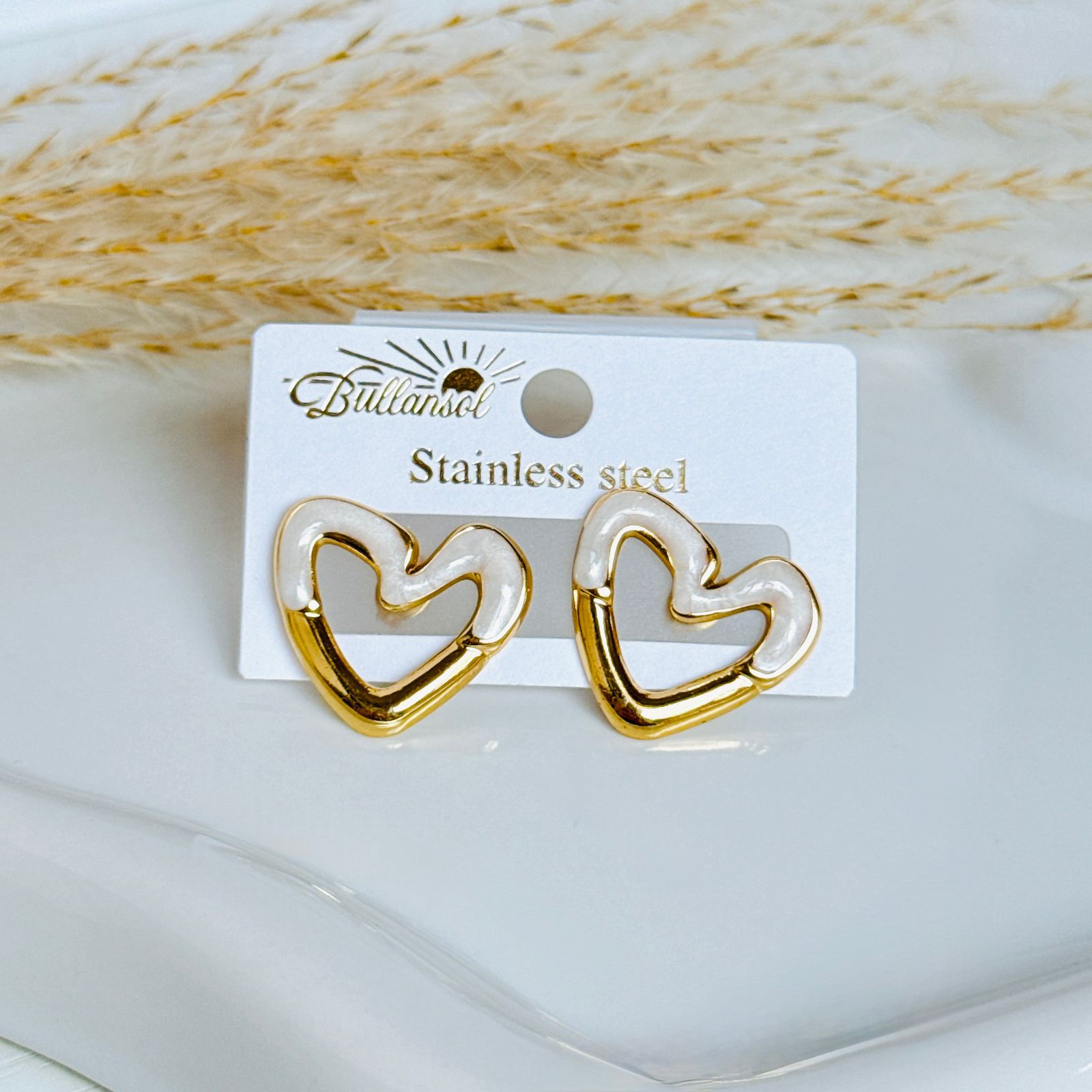 ARETE ESMALTADO NATURAL CORAZON MITAD DORADO