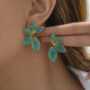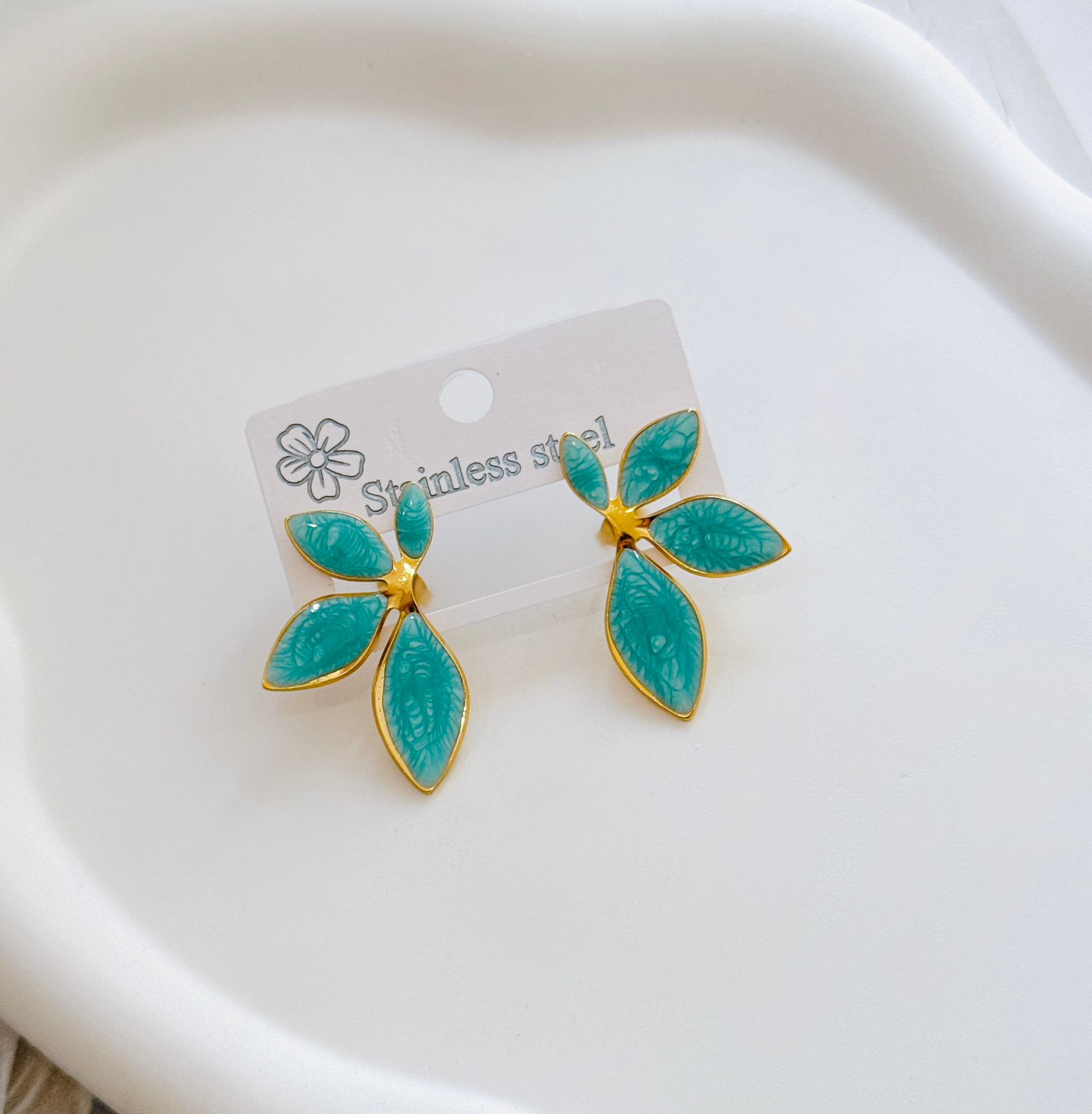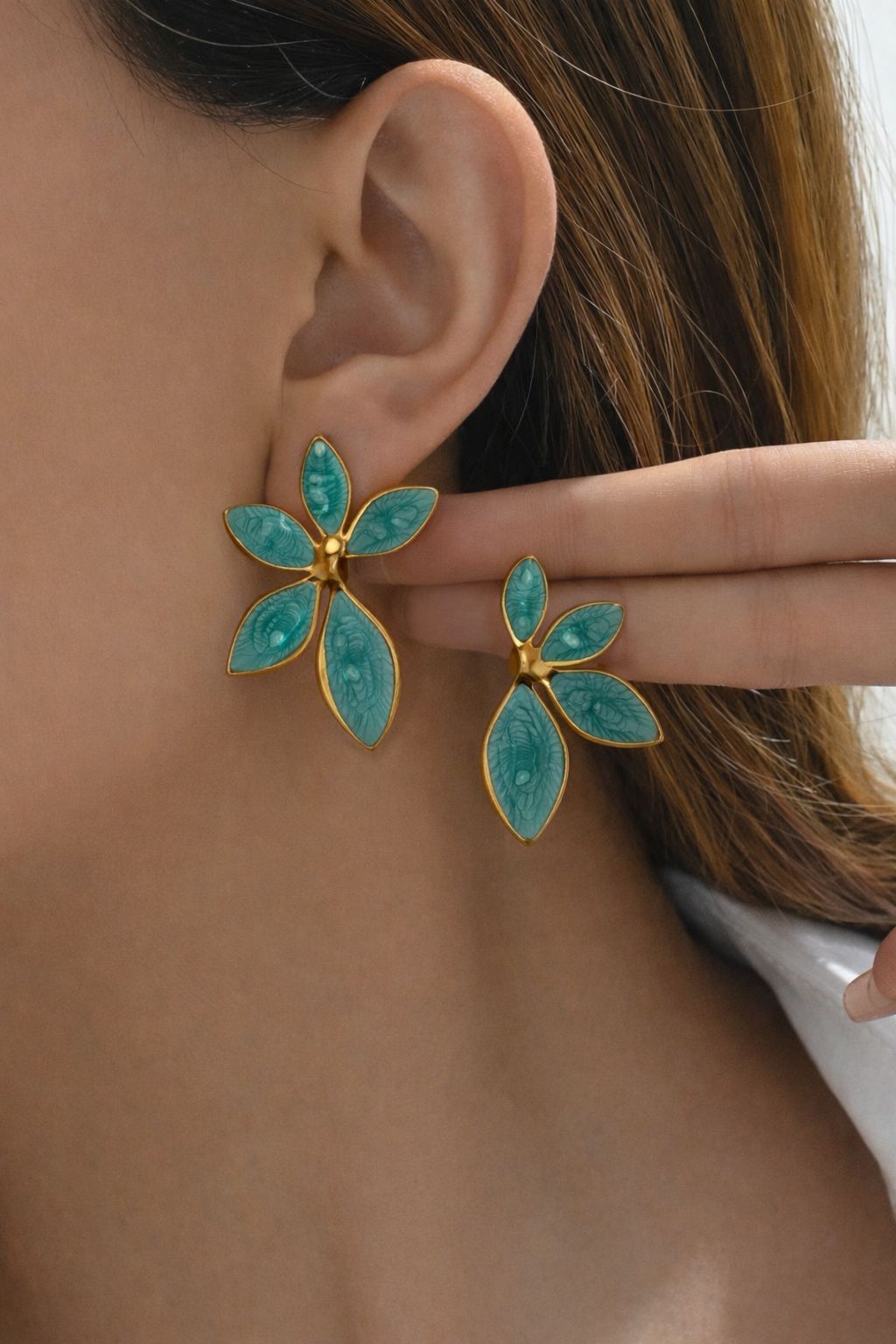 ARETE ESMALTADO NATURAL FLOR DE CINCO PETALO AQUA