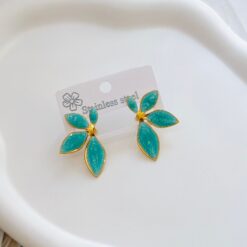 ARETE ESMALTADO NATURAL FLOR DE CINCO PETALO AQUA