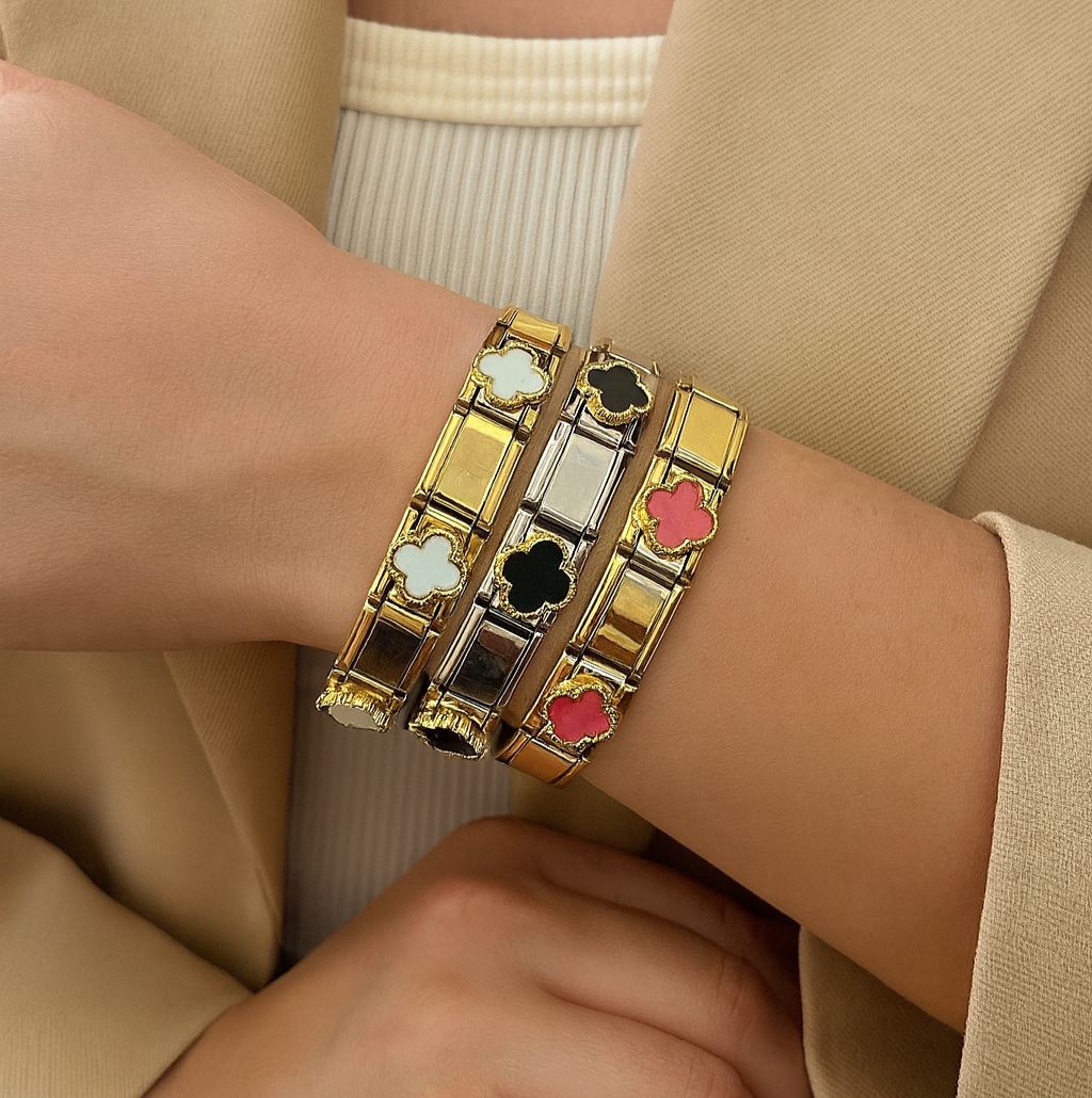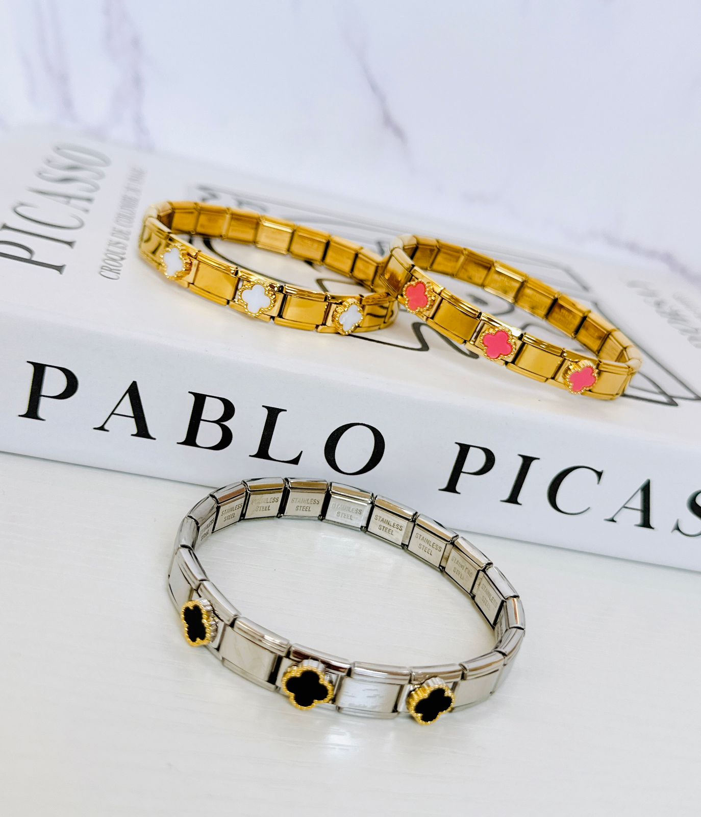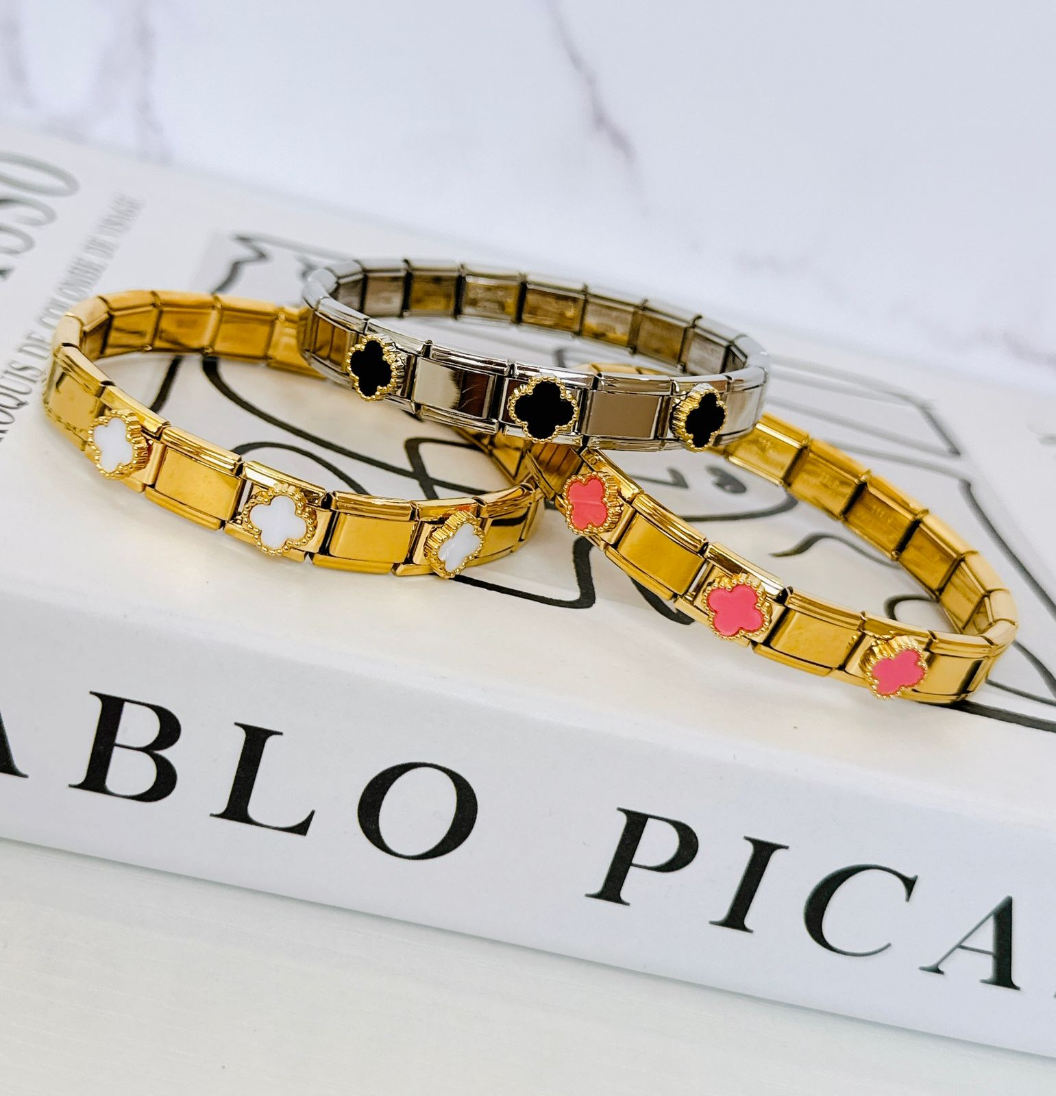 BRAZALETE ITALIANO CON CHARMS DE TREBOL