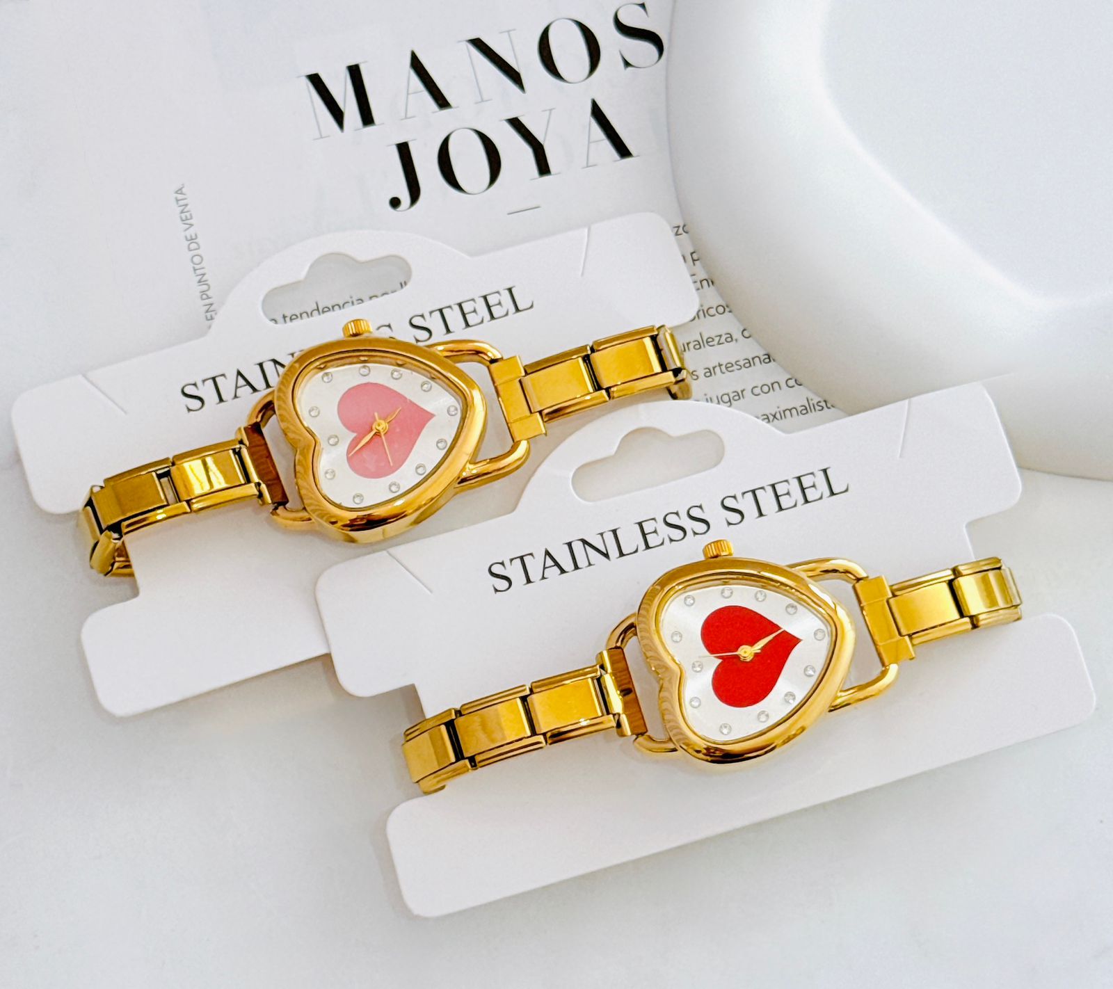 BRAZALETE ITALIANO CON RELOJ⌚CON DISEÑO CORAZON