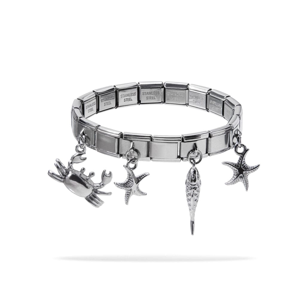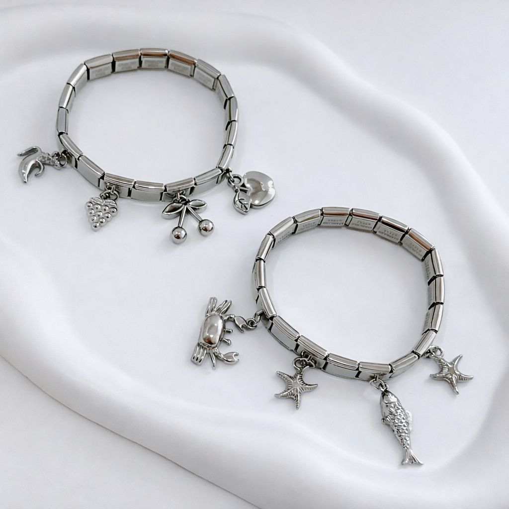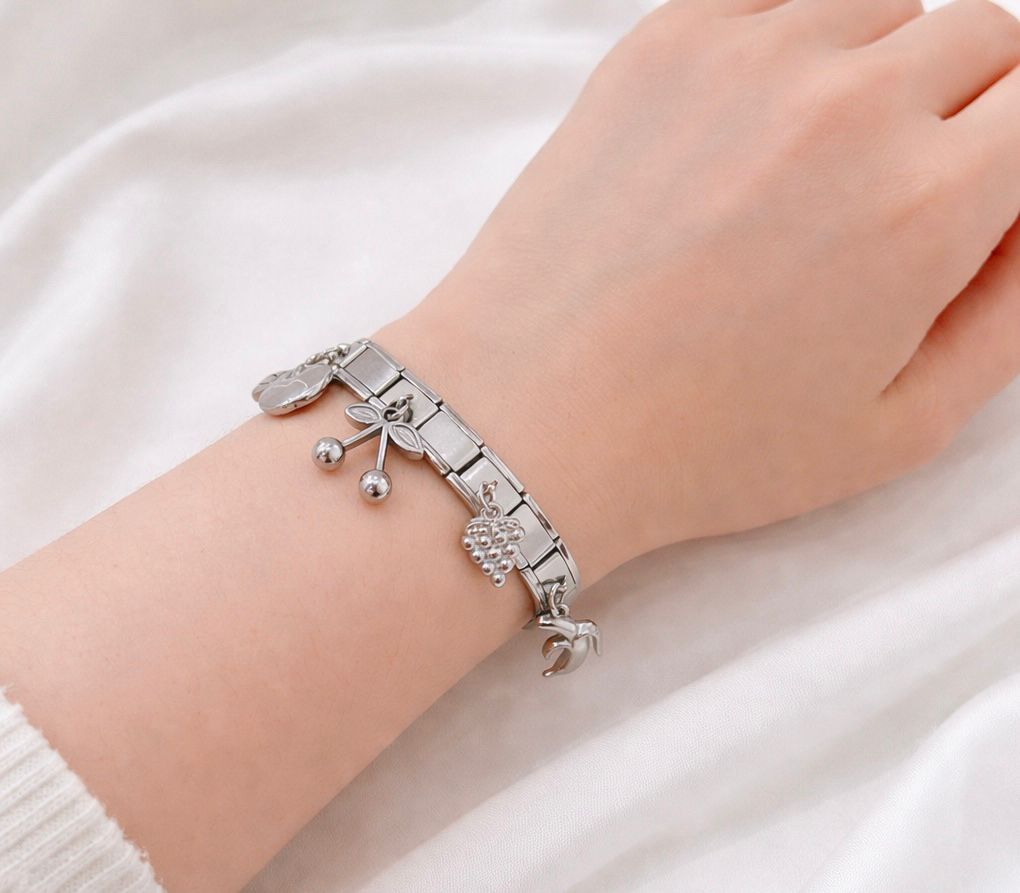 BRAZALETE ITALIANO PLATA CON CHARMS DE MAR O FRUTA
