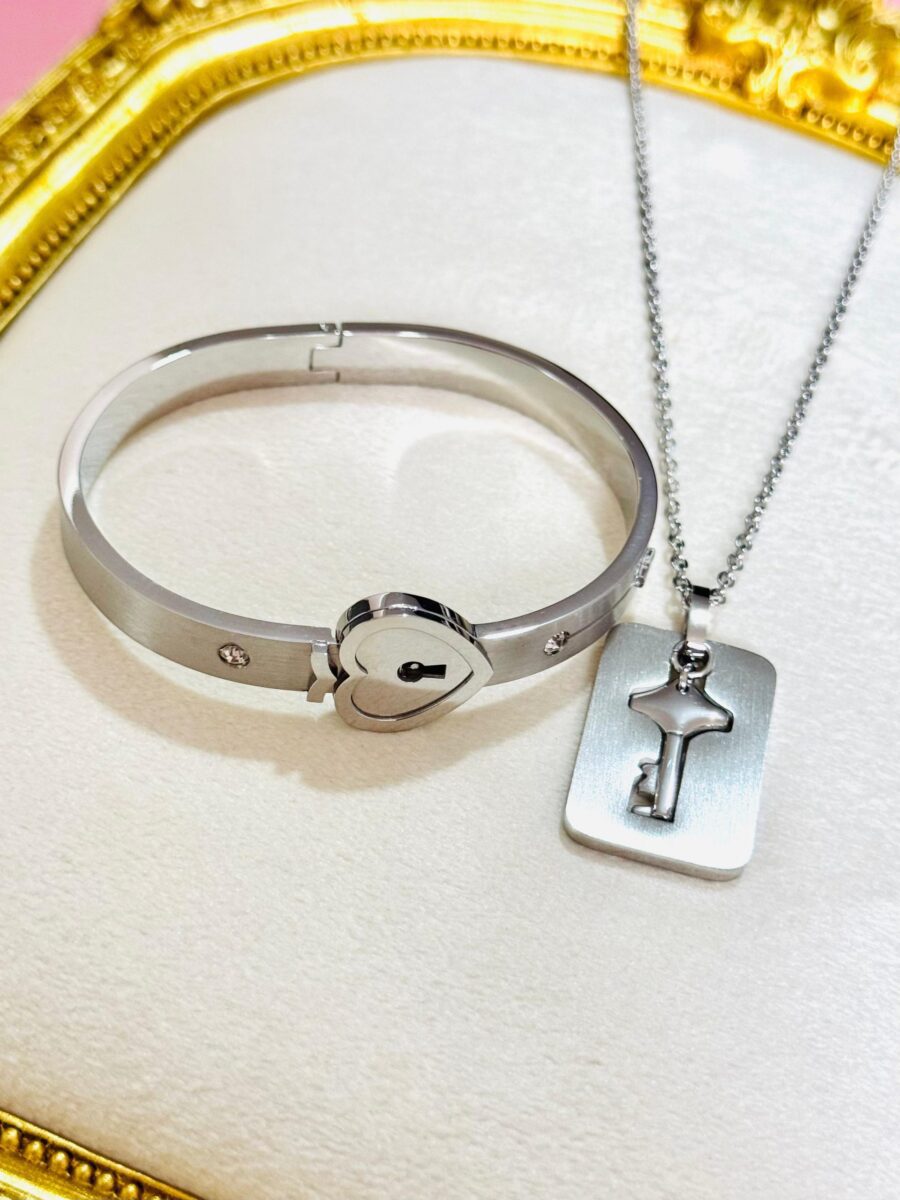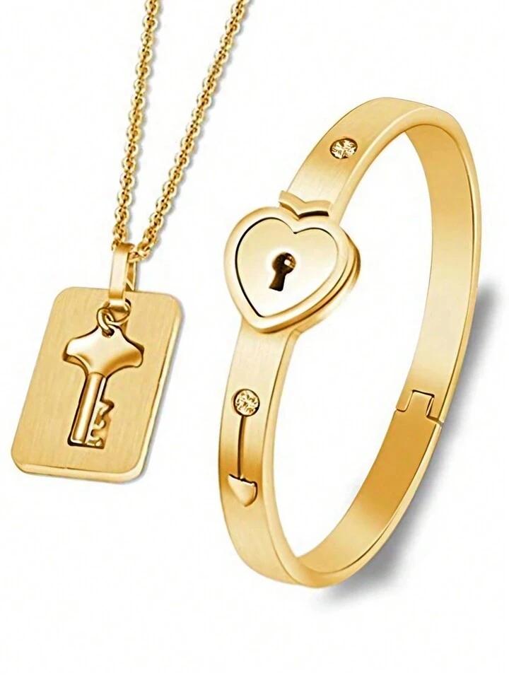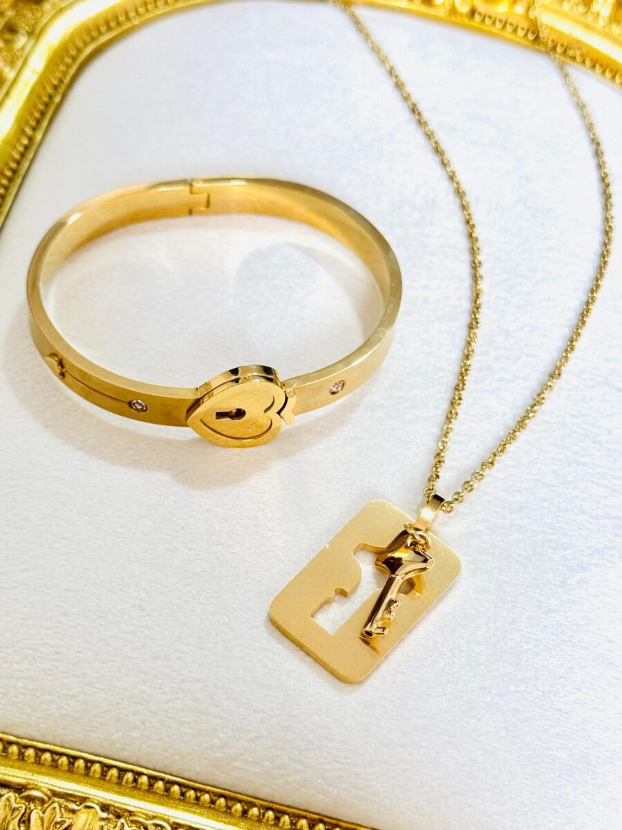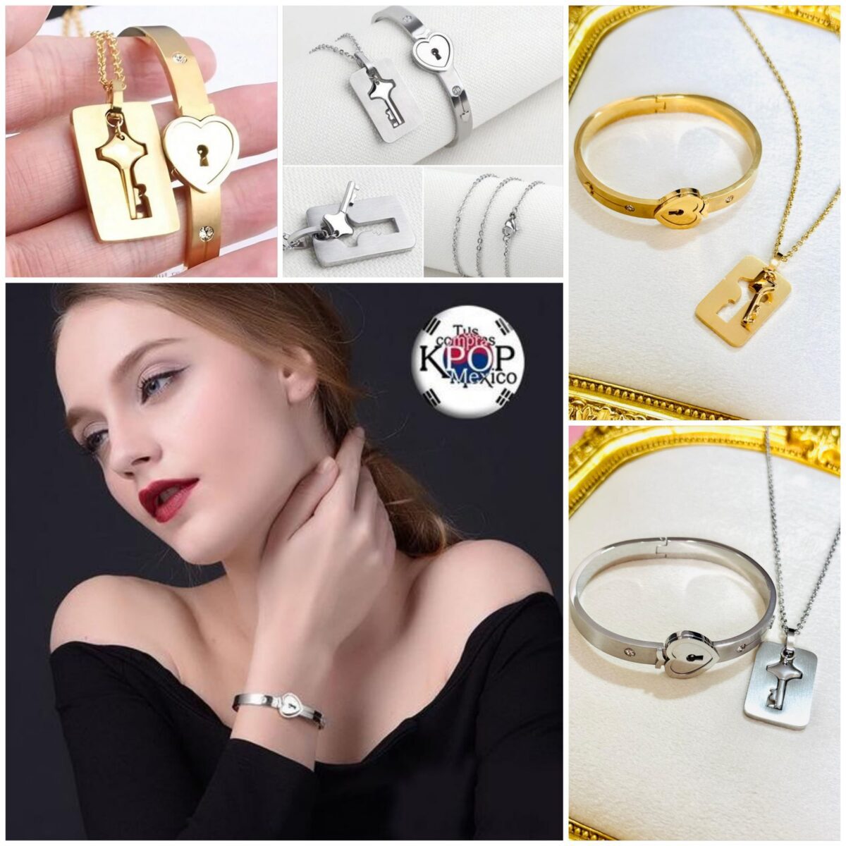 BRAZALETE Y COLLAR CON LLAVE DORADO/PLATA