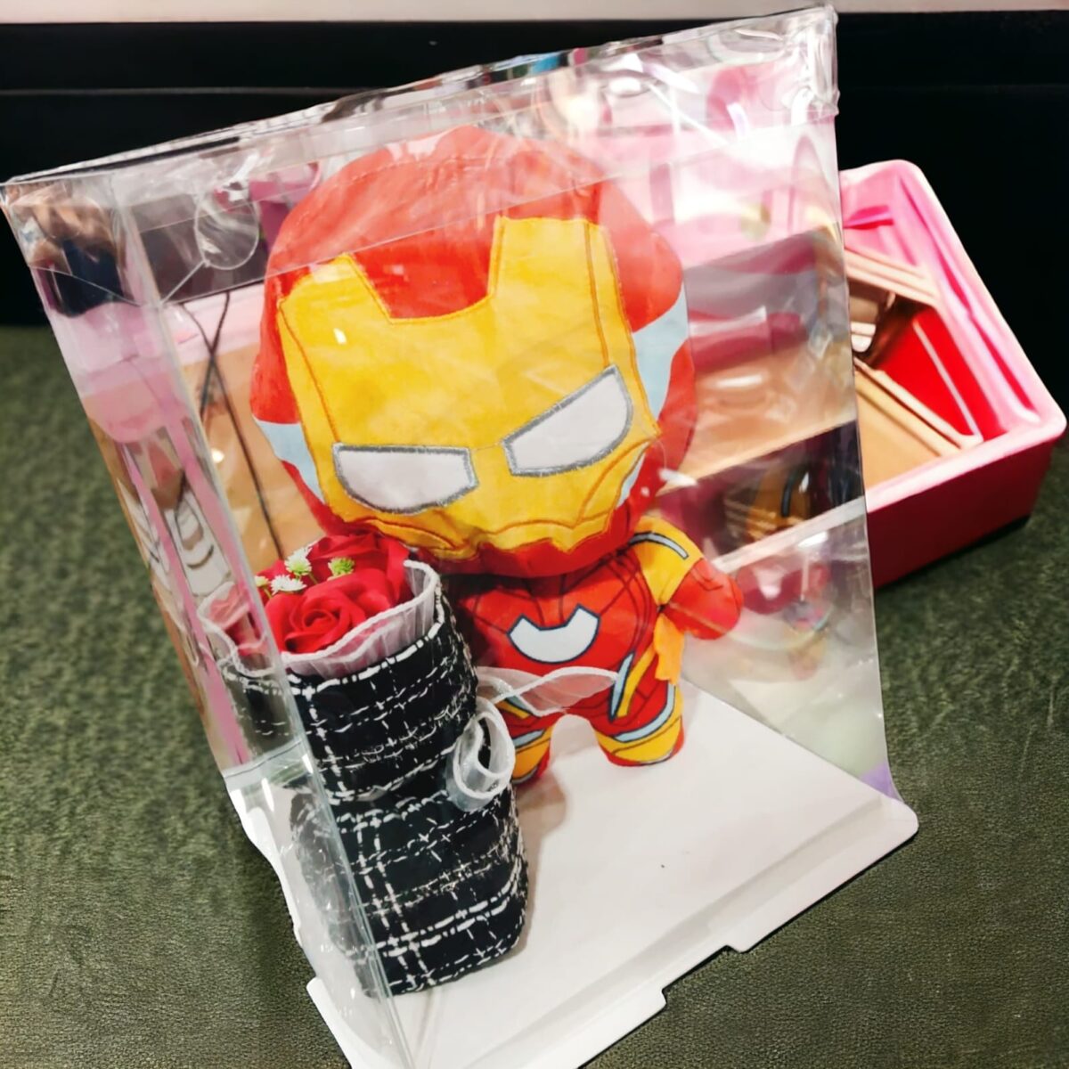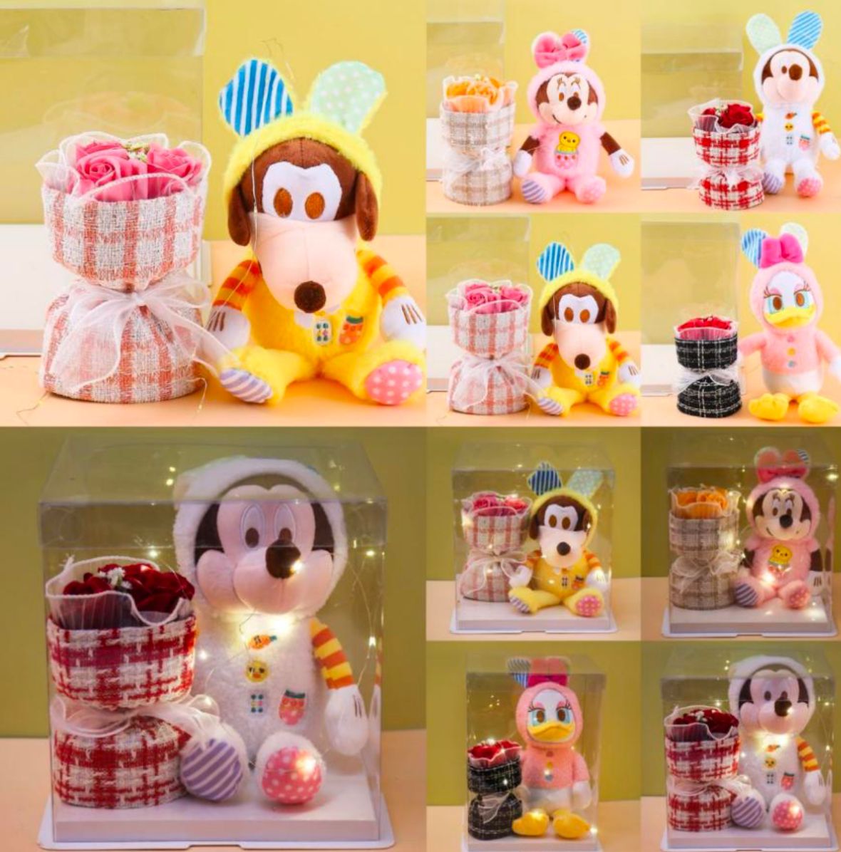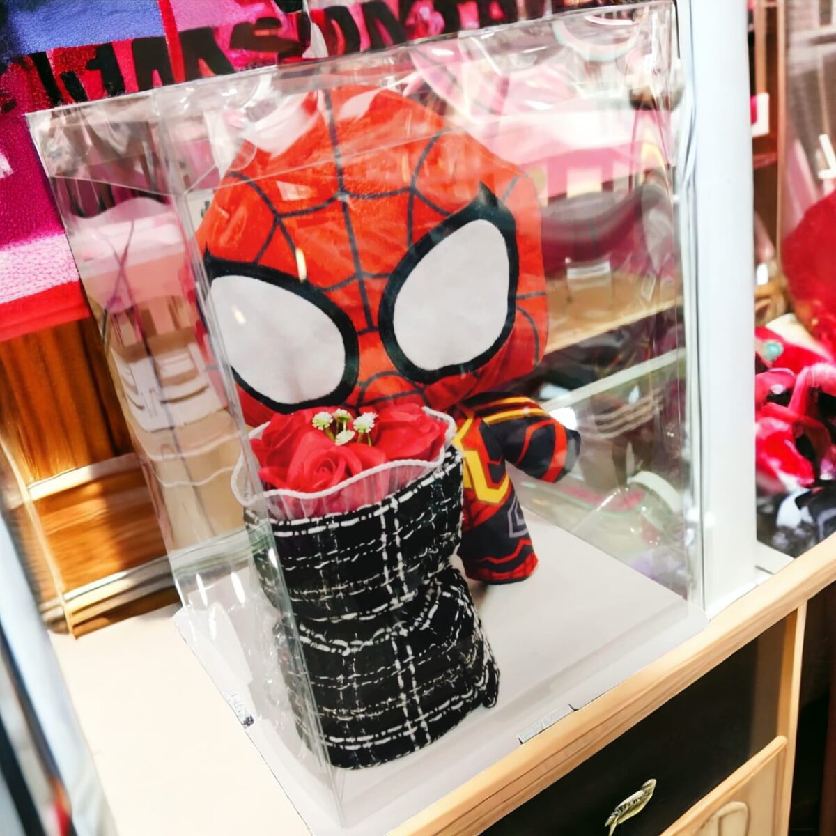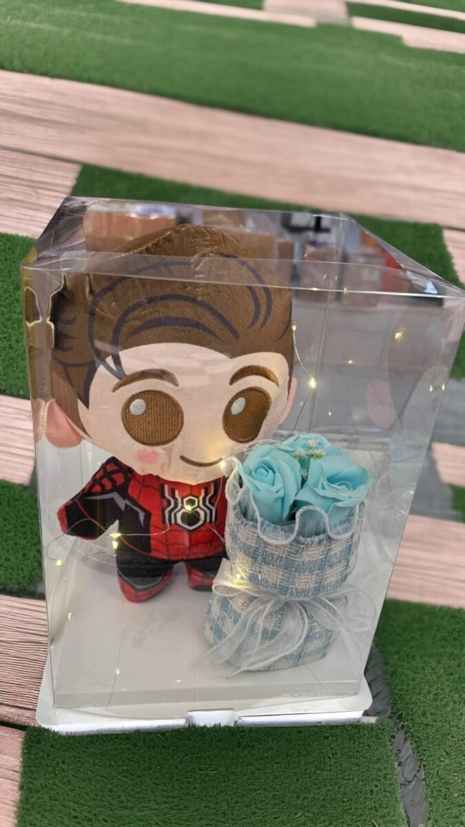 CAJA DE REGALO CON PELUCHE Y FLOR (PERSONAJES)