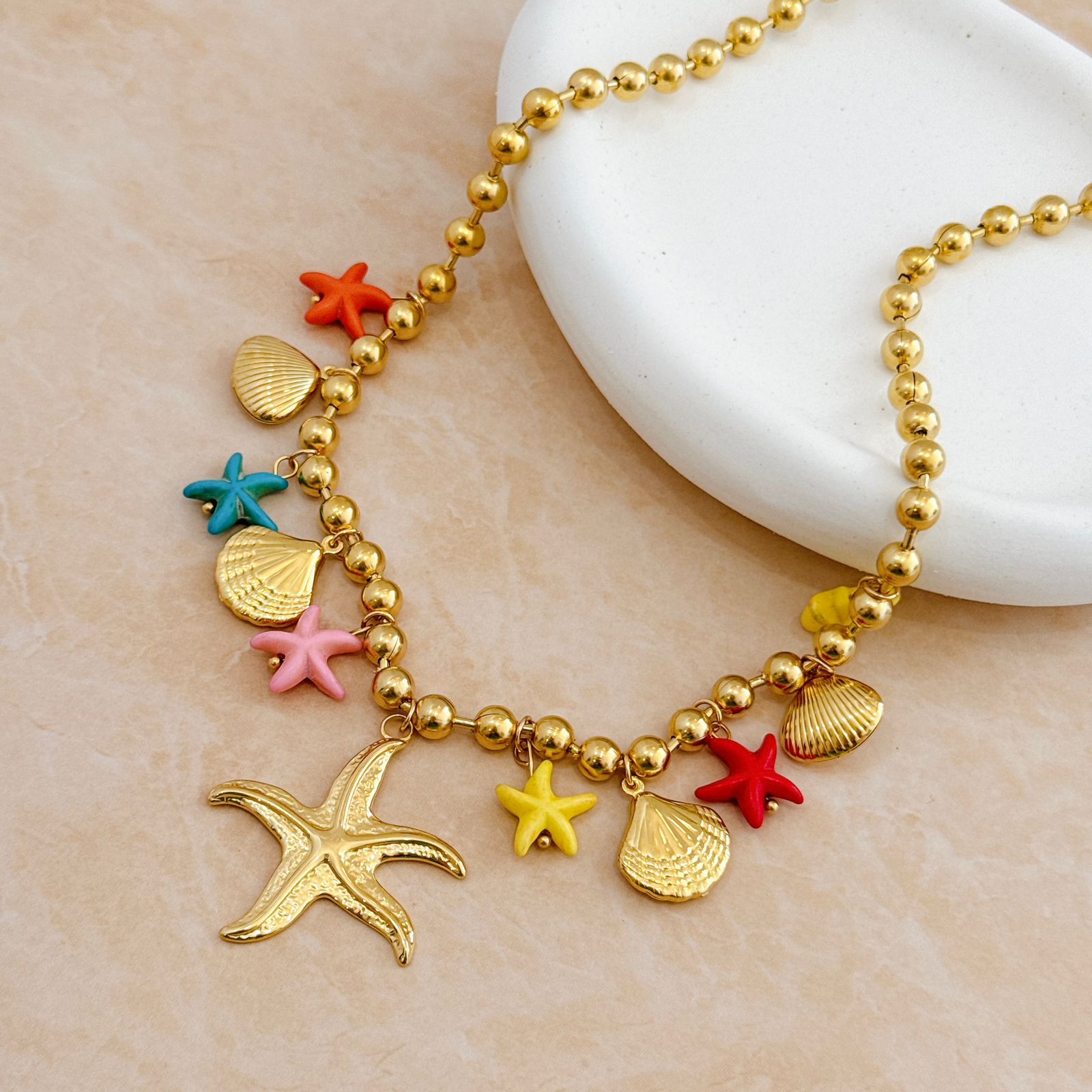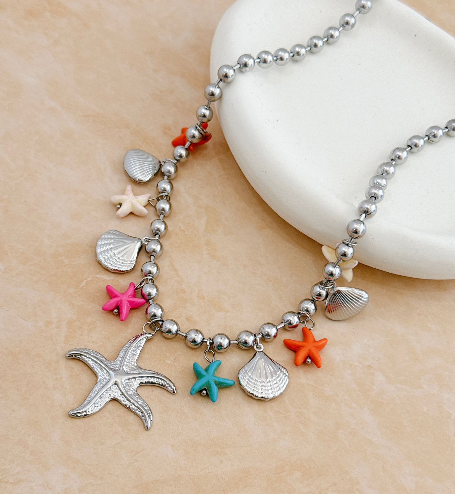 COLLAR MULTICHARM DE BOLITA Y ESTRELLA DE MAR