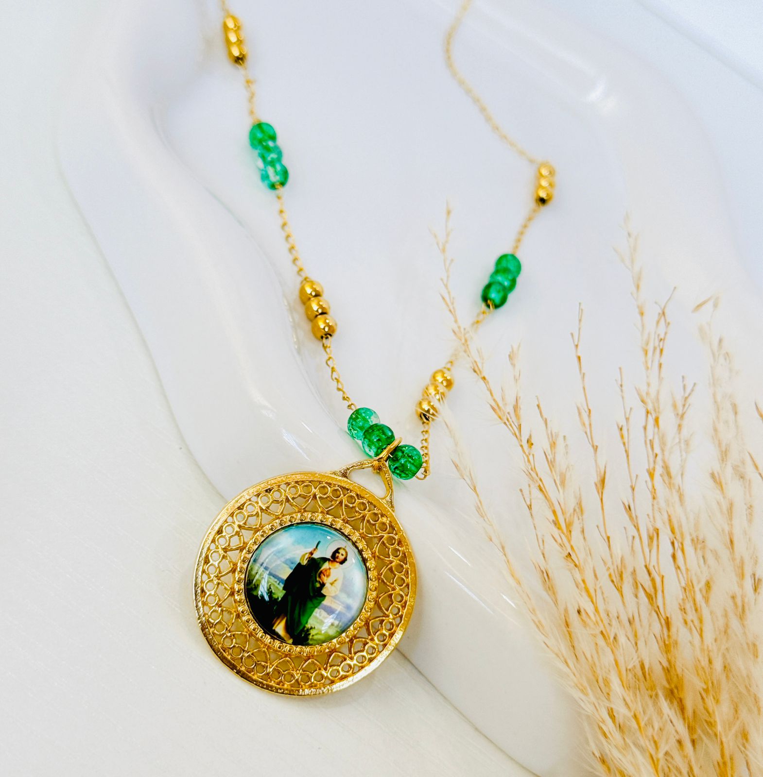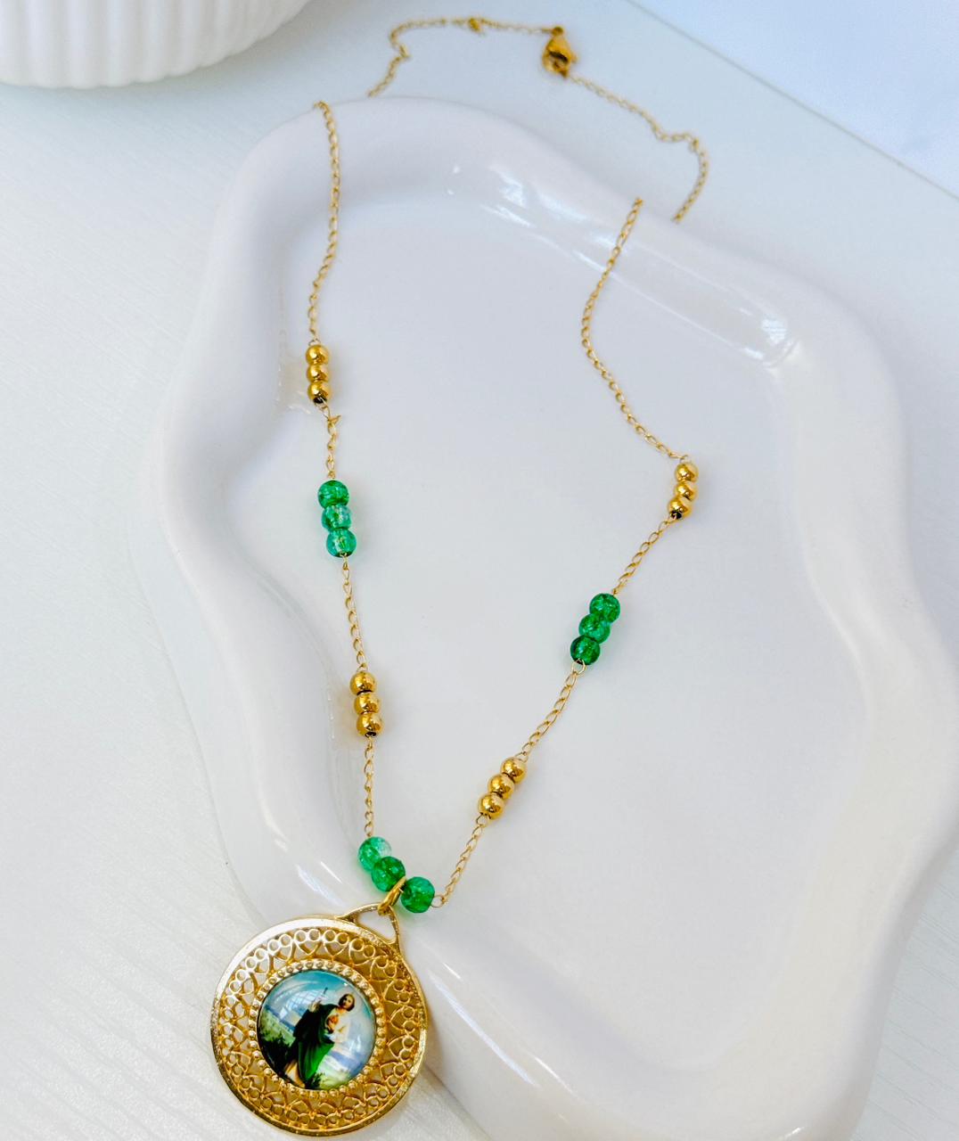 COLLAR BOLITA DORADO Y VERDE SAN JUDA