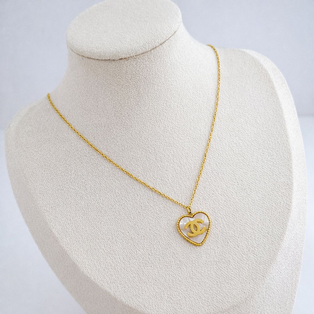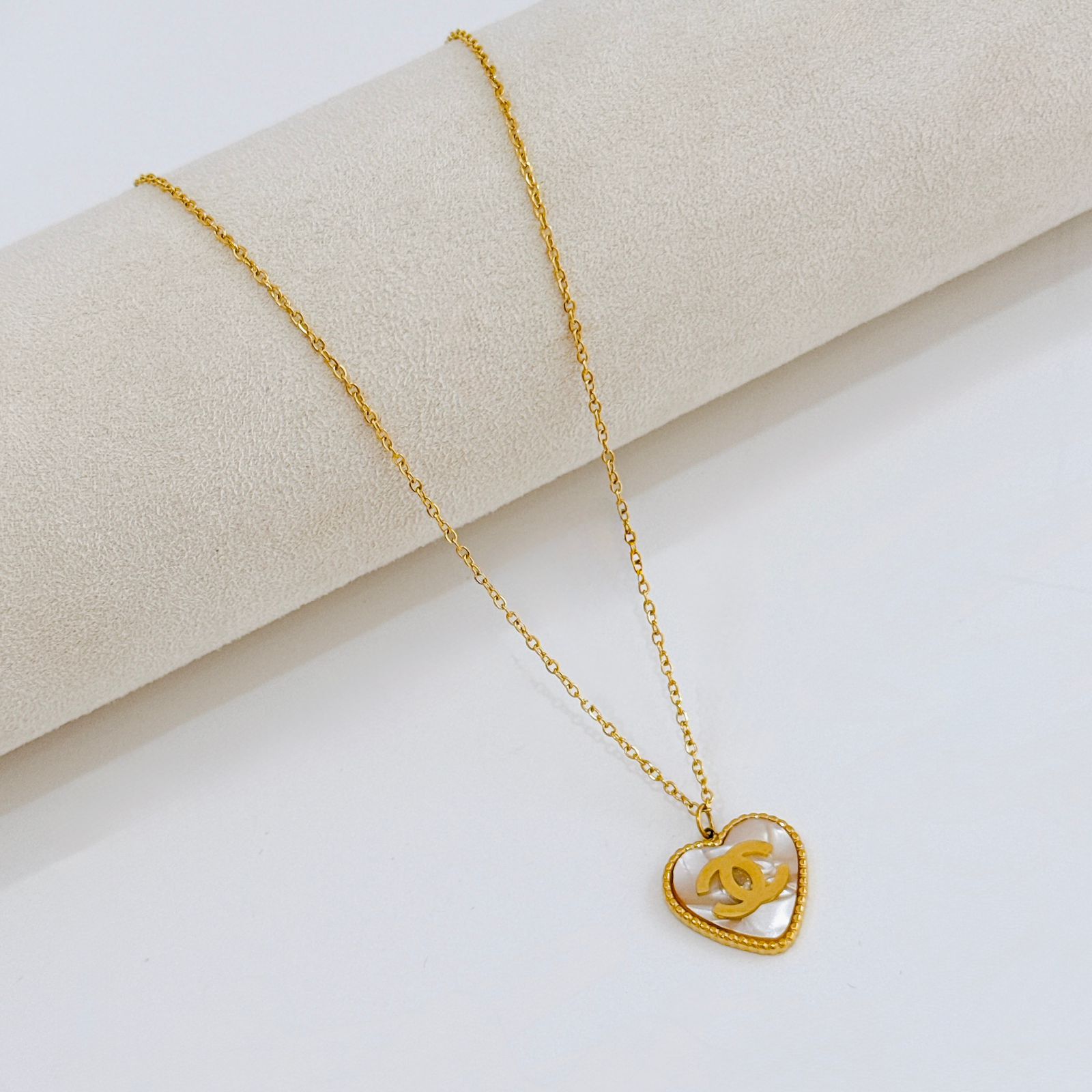 COLLAR CADENA CHANNEL CORAZON ESMALTADO BLANCO