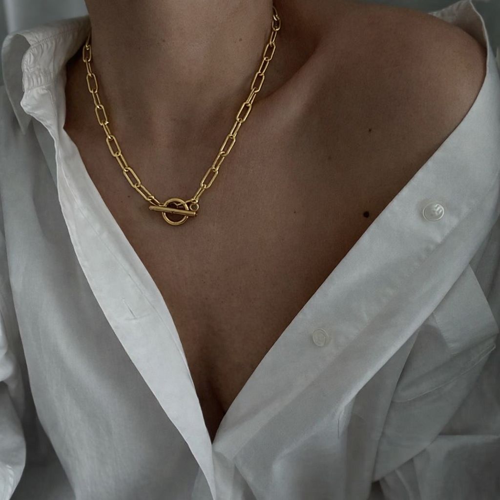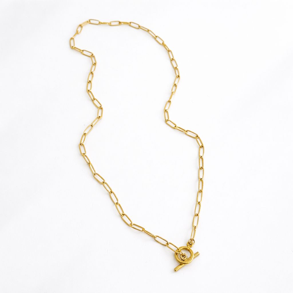 COLLAR CON ESLABON CHICO Y BROCHE T DORADO