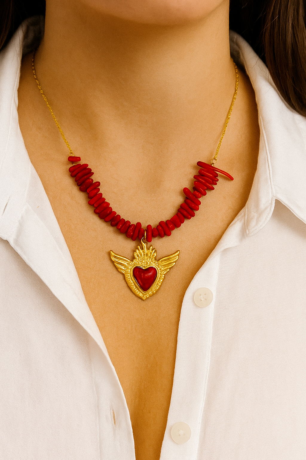 COLLAR OJO TRUCO AZUL CIELO Y ARETE