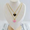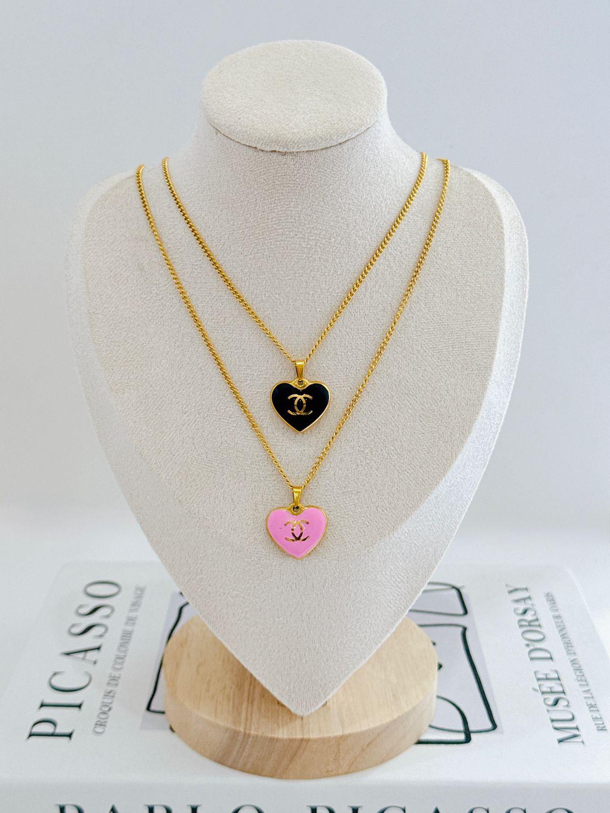 COLLAR CORAZON CON DISEÑO CHANNEL ROSA/NEGRO