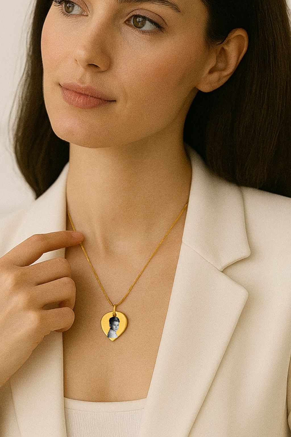 COLLAR CORAZON DORADO PERSONALIZADO CON GRABADO LASER