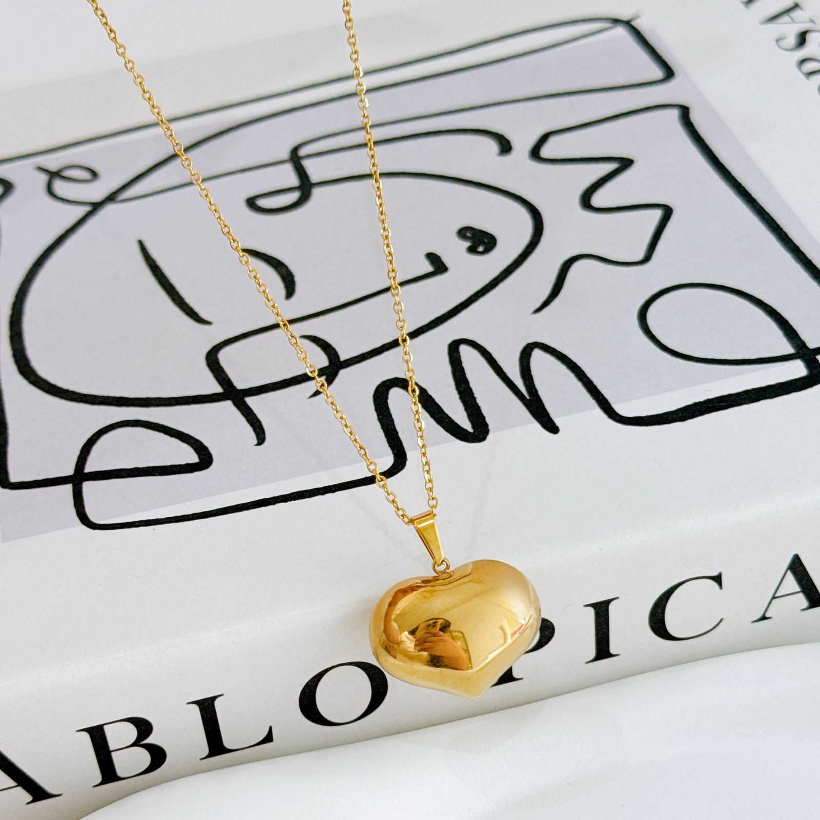 COLLAR CORAZON GLOBO DORADO