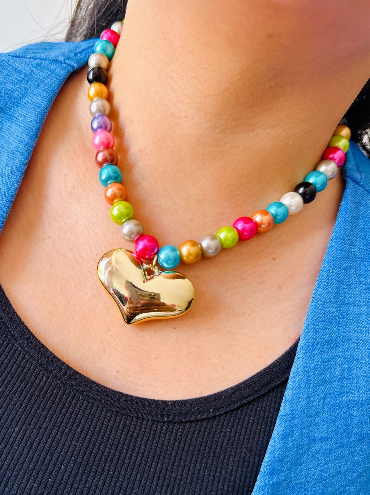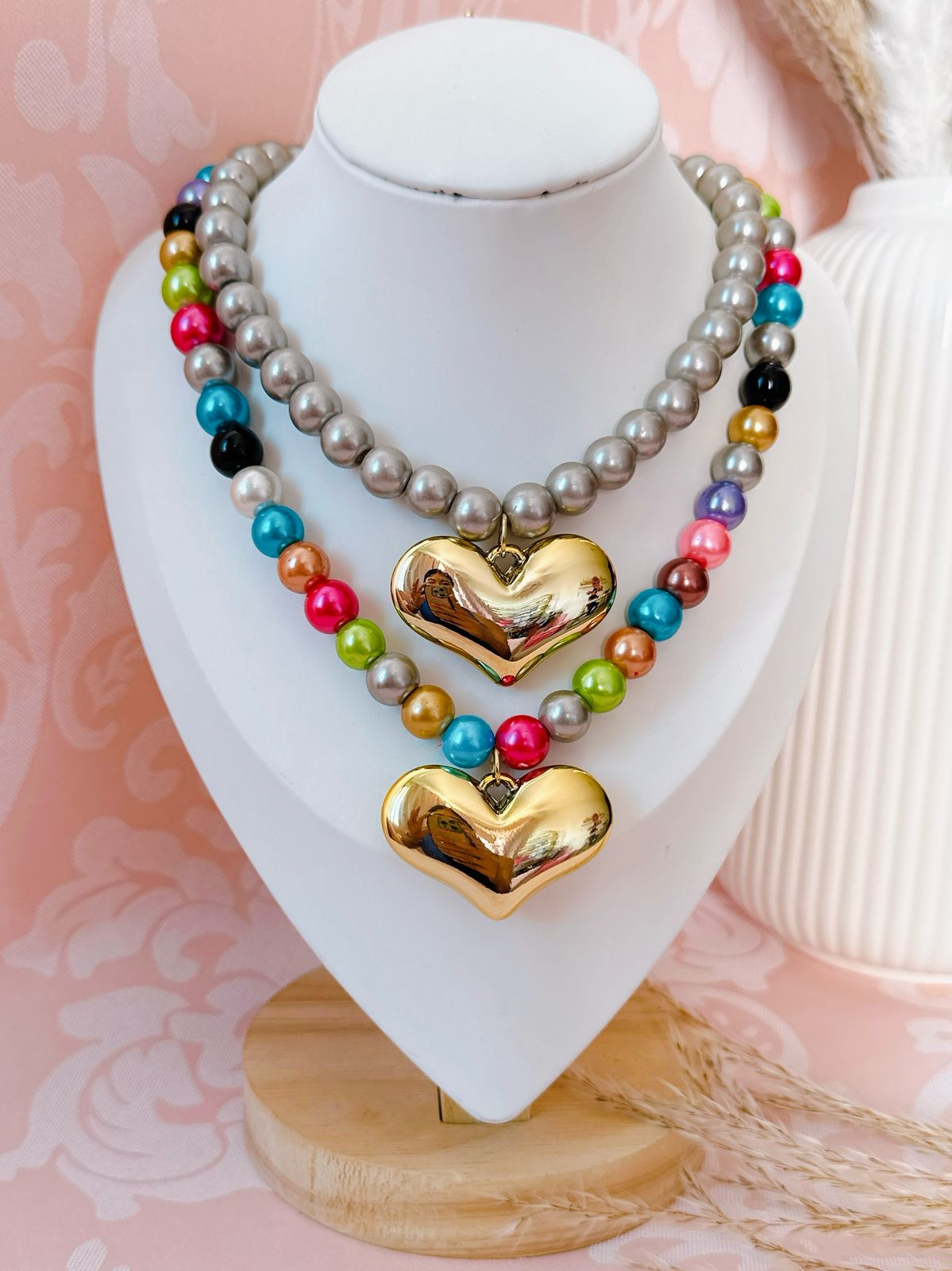 COLLAR CORAZÓN PLASTIMETAL MULTICOLOR/GRIS