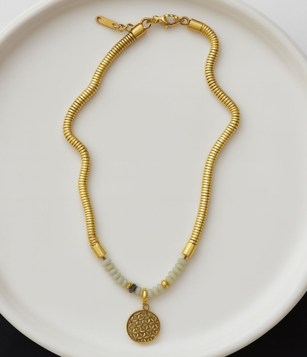 COLLAR DELUXE PIEDRA NATURAL MULTICOLOR Y DIJE