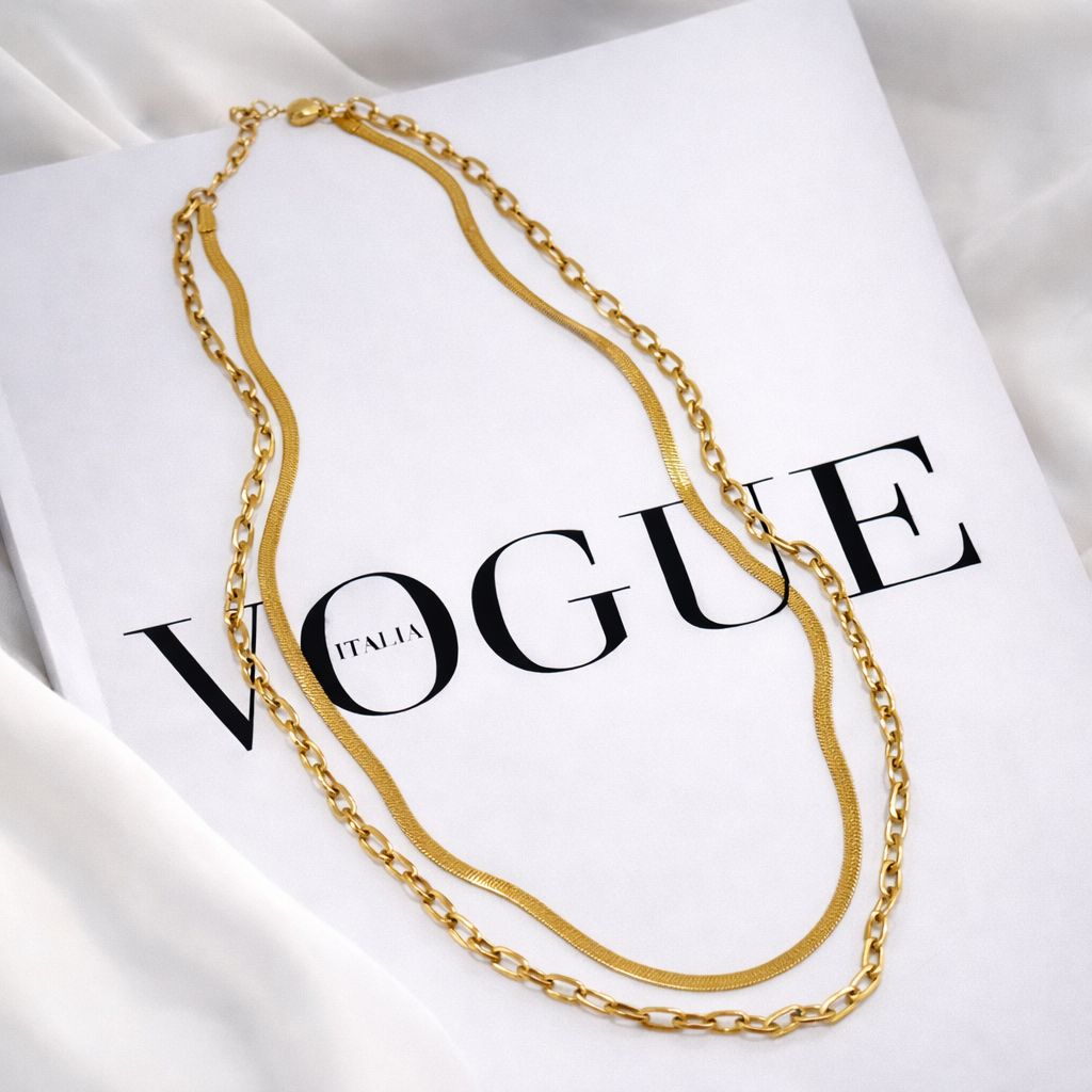 COLLAR DOBLE CAIDA CON ESLABON Y PANZA DE VIBORA