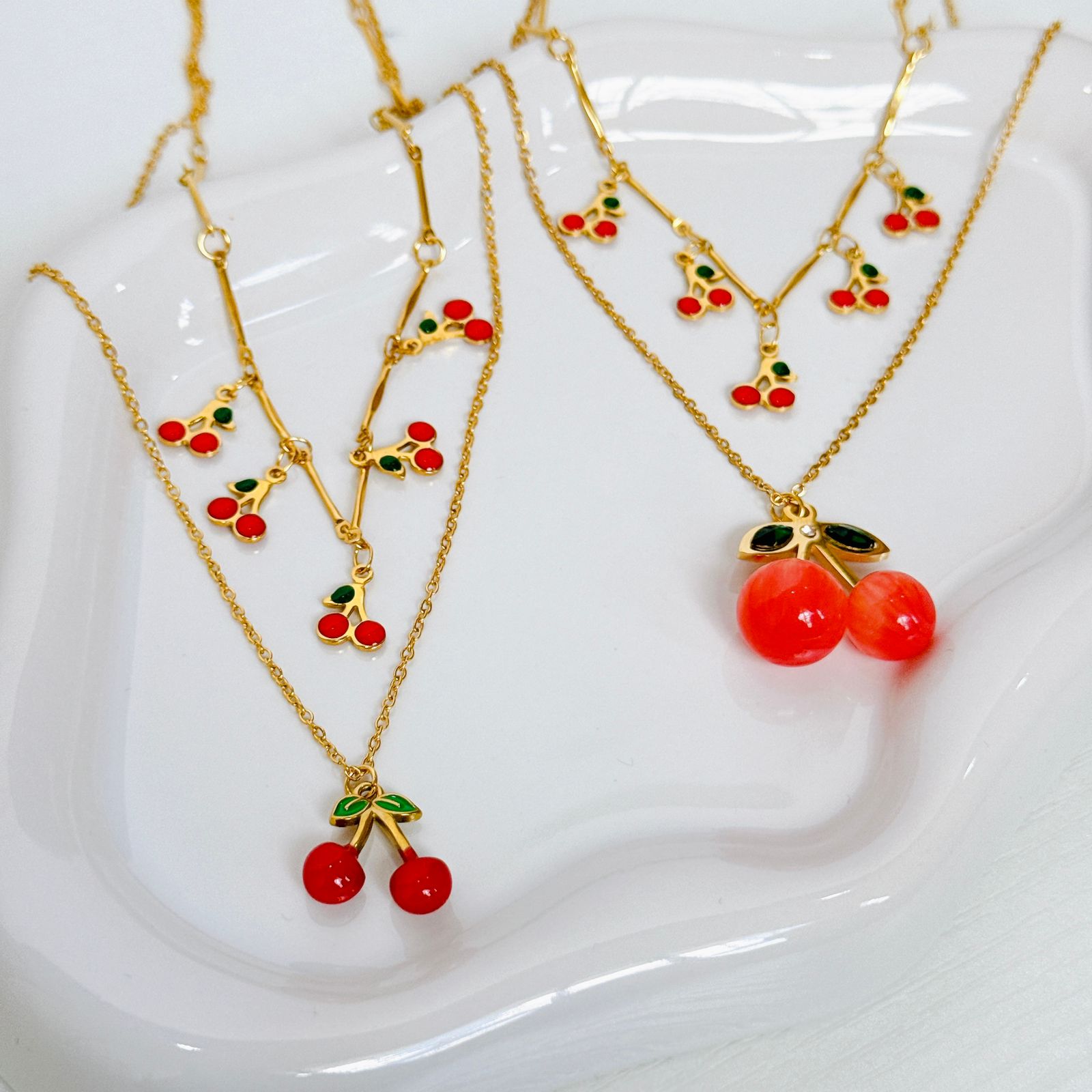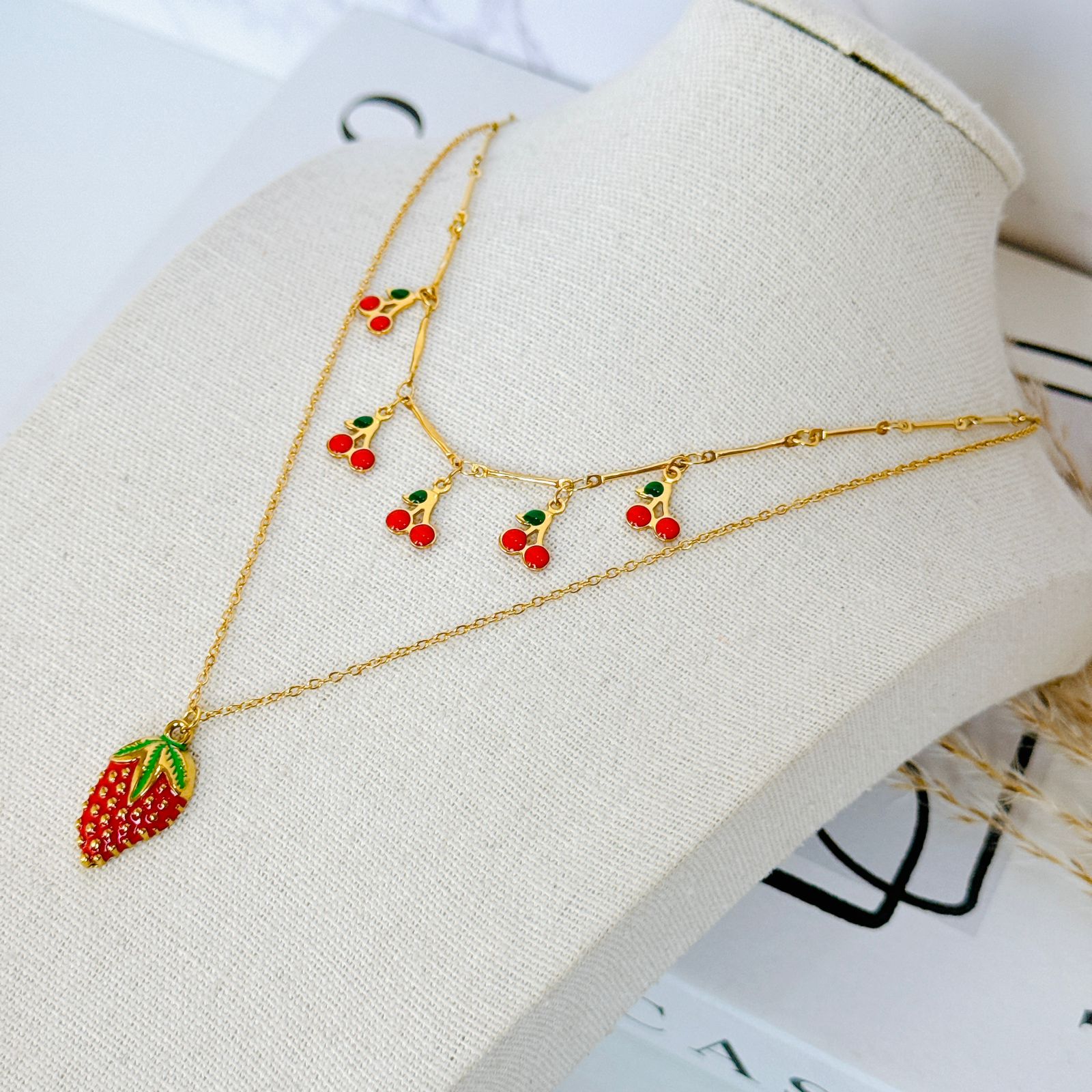 COLLAR DOBLE CAIDA CON MULTI CHARMS DE CEREZA