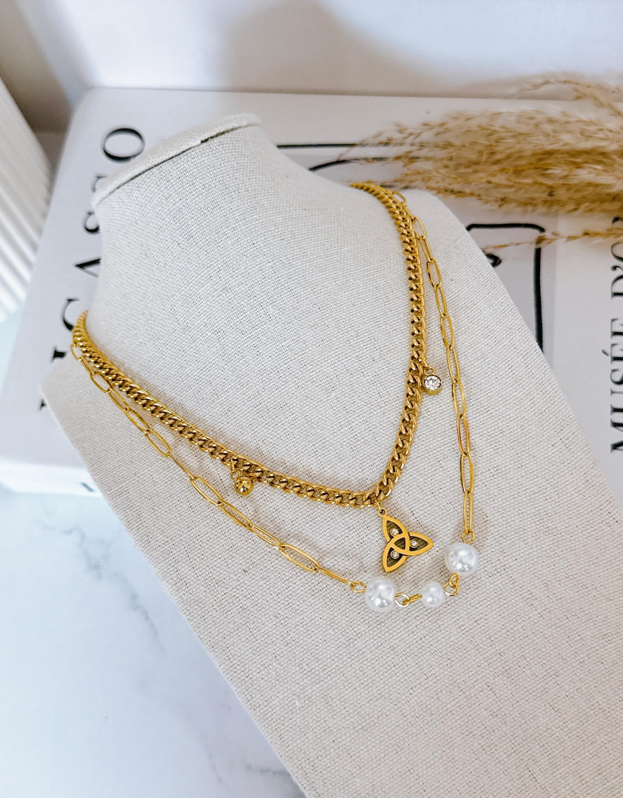 COLLAR DOBLE CAIDA PERLA DIJE NUDO DE BRUJA