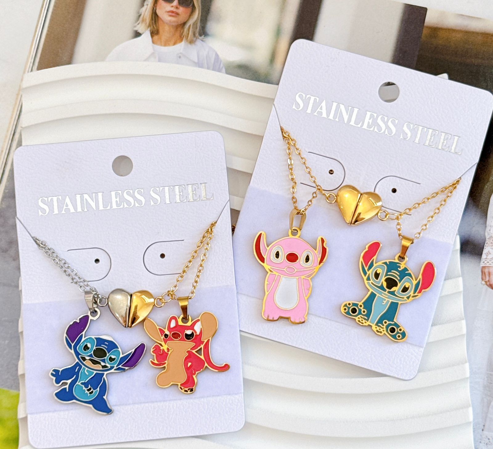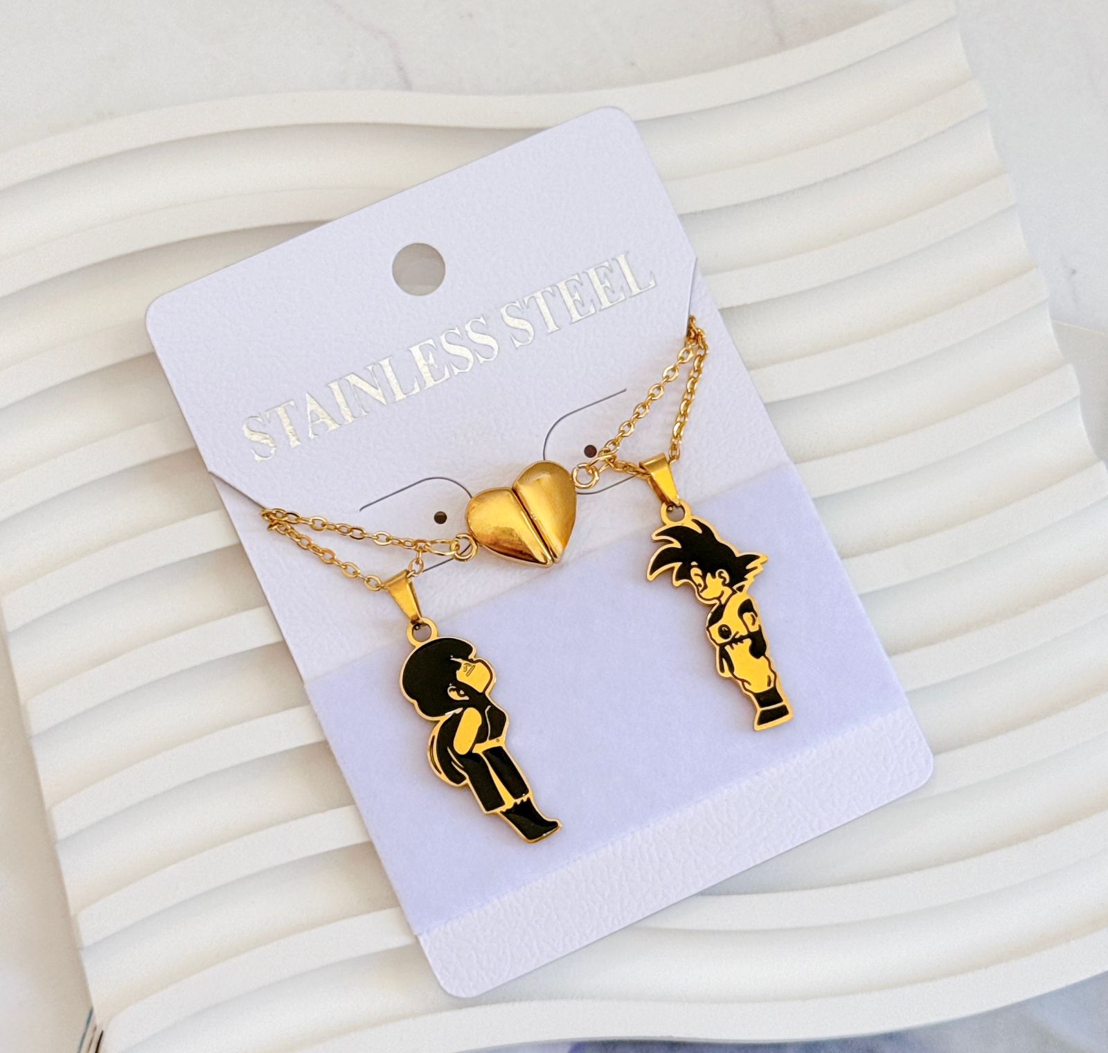 COLLAR DUO CON IMAN DE PERSONAJES DORADO