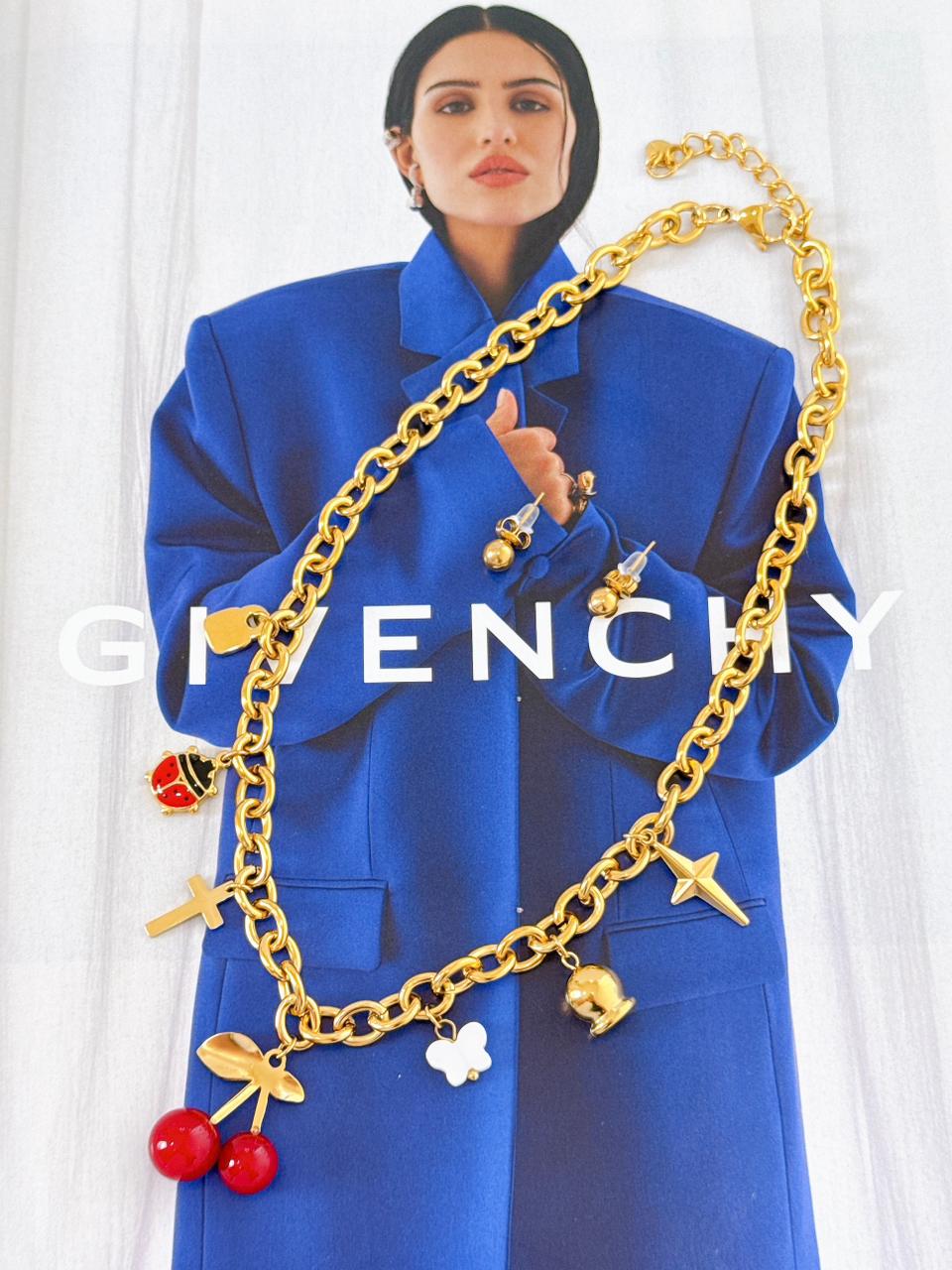 COLLAR ESLABON CON MULTI CHARMS Y DIJE CEREZA