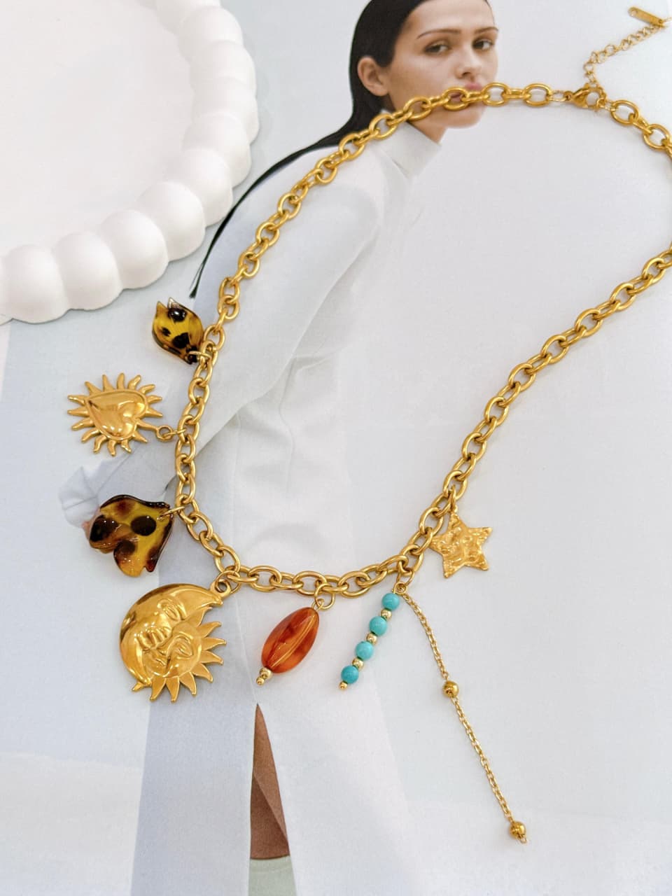 COLLAR ESLABON DE ANIMAL PRINT CON DIJE ECLIPSE