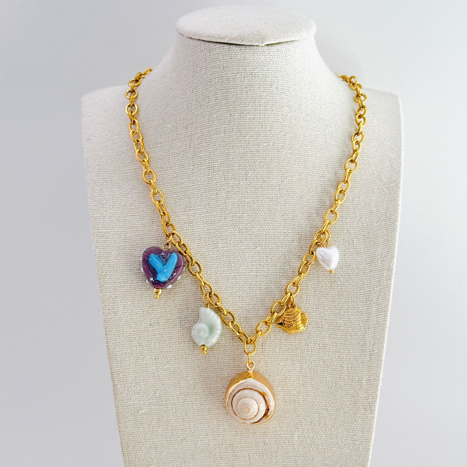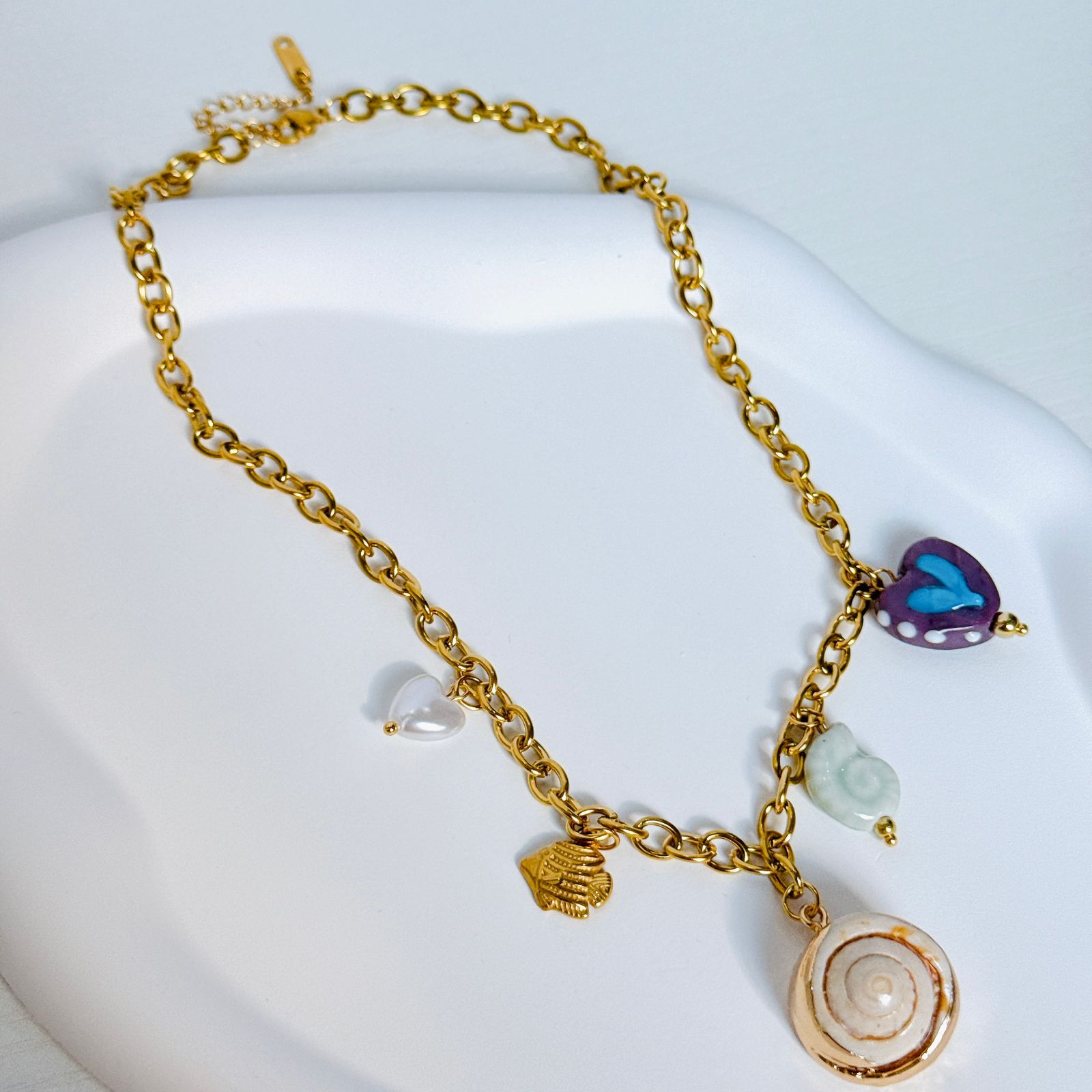 COLLAR ESLABON MULTI CHARMS CARACOL CAFE