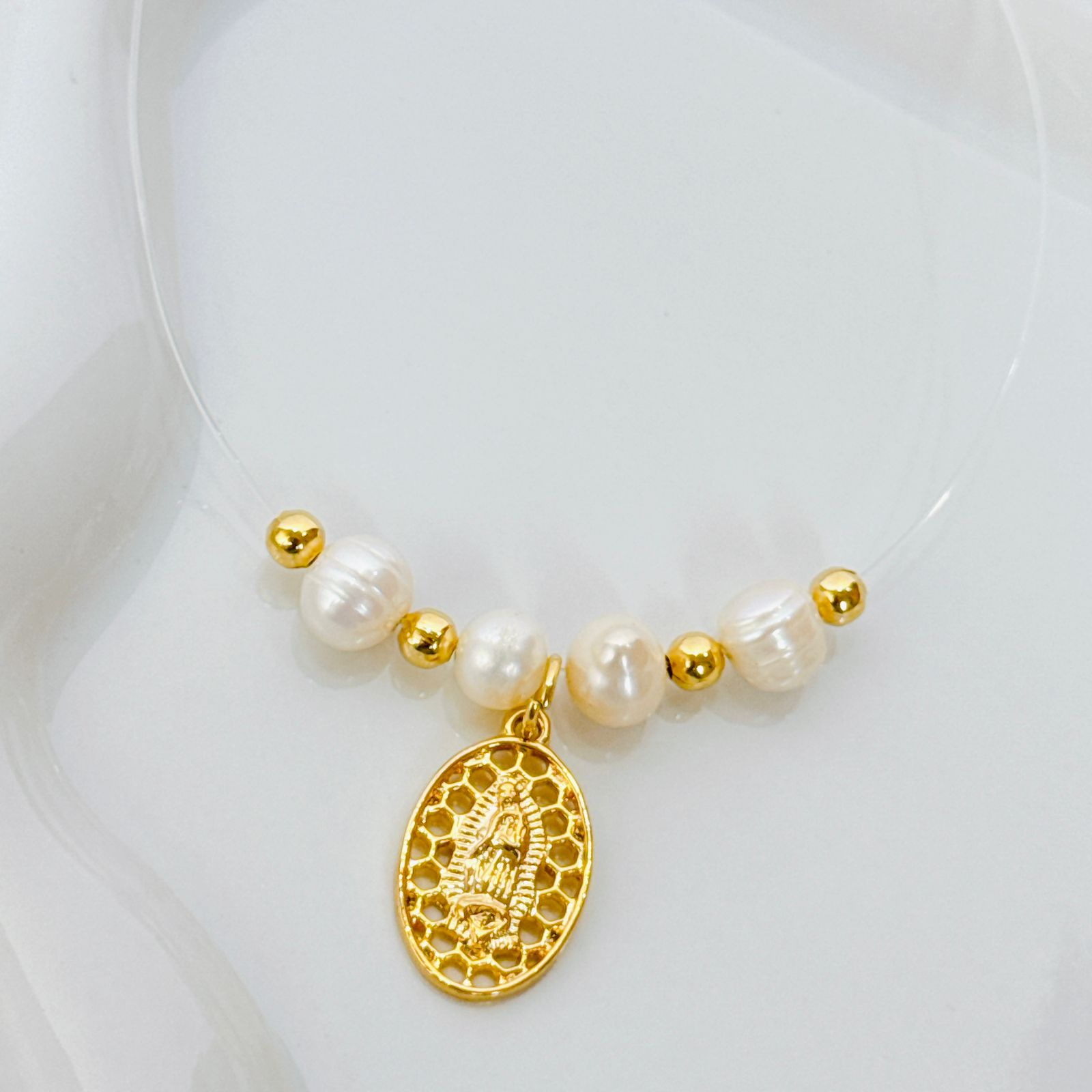 COLLAR INVISIBLE CON PERLA DE RIO Y VIRGEN