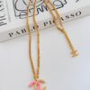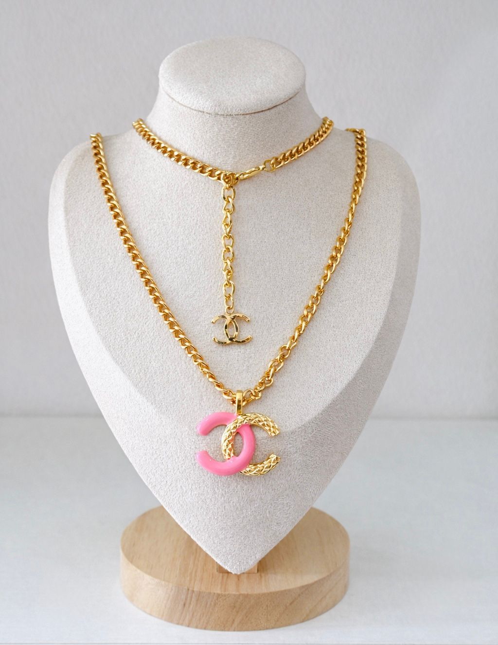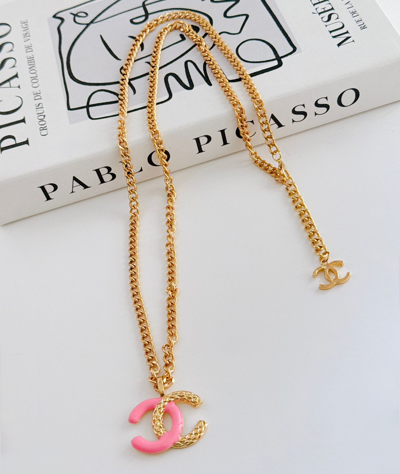 COLLAR LARGO CHANNEL DORADO CON ROSA