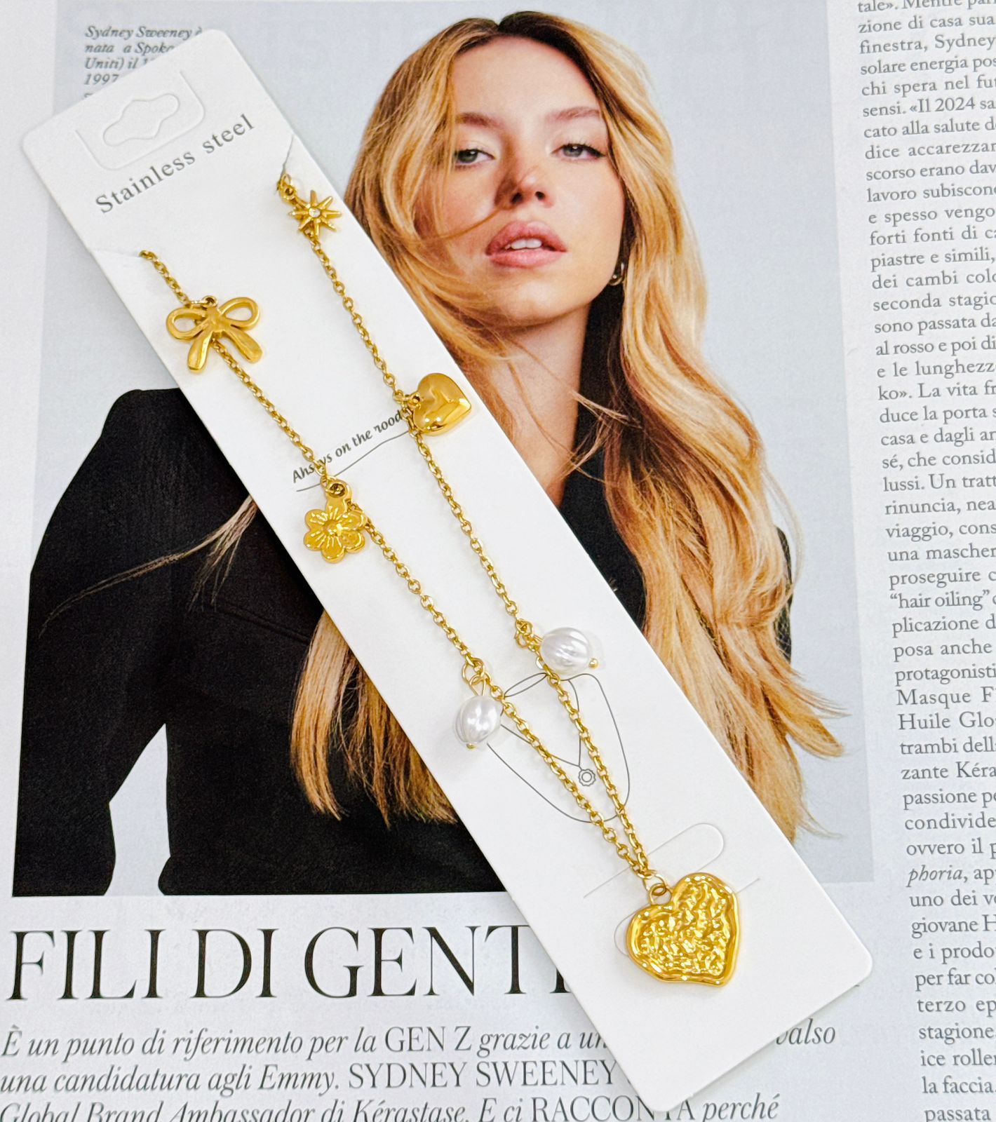 COLLAR MULTI CHARMS CON CORAZON CORRUGADO