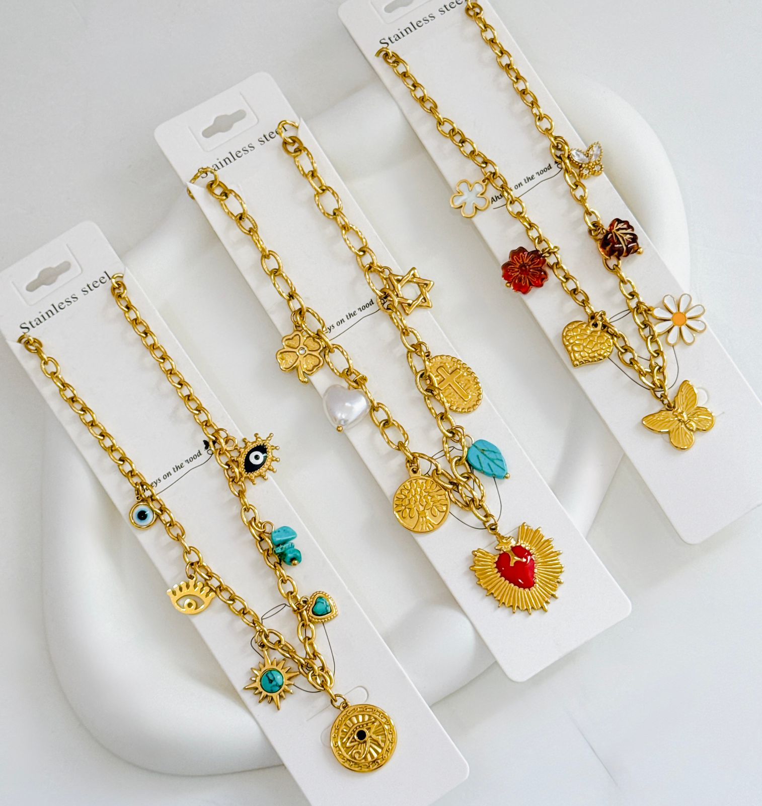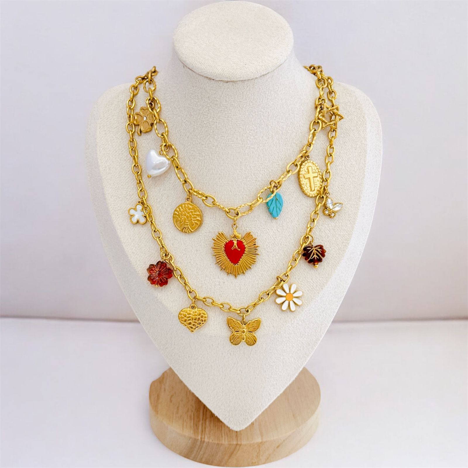 COLLAR MULTI CHARMS DE LUNA/ESTRELLA/MARIPOSA/CORAZON