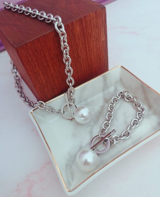 COLLAR O PULSERA BROCHE T PERLA PLATA