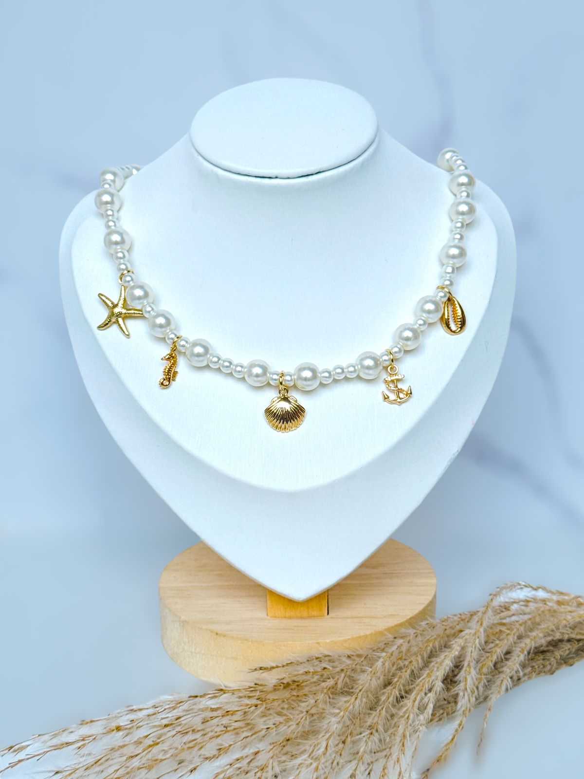COLLAR PERLA CARACOL O MULTI DIJE DE MAR
